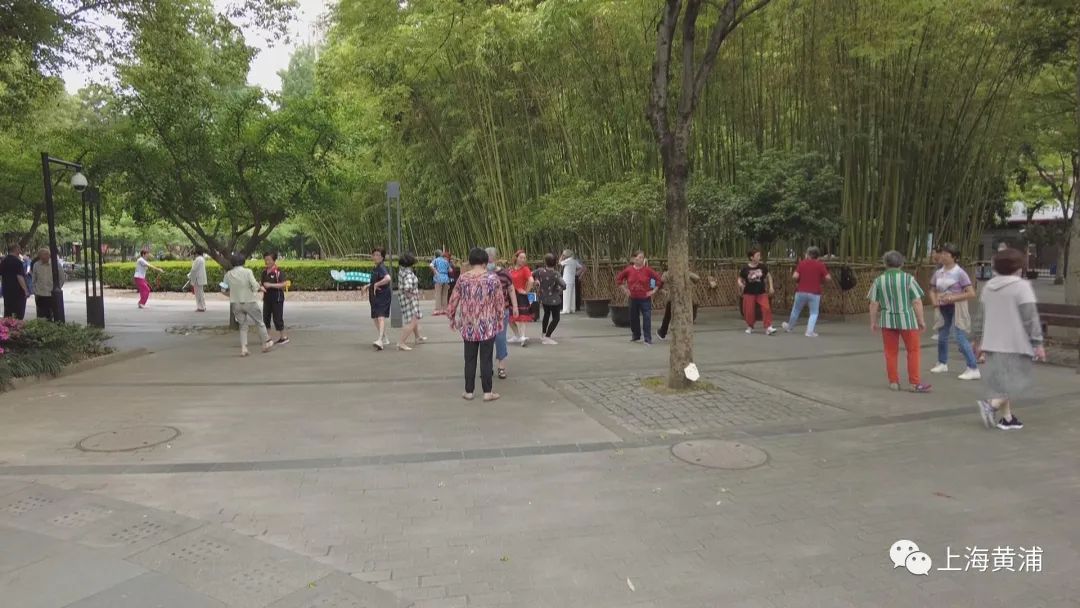 有组团一起早锻炼的老人,