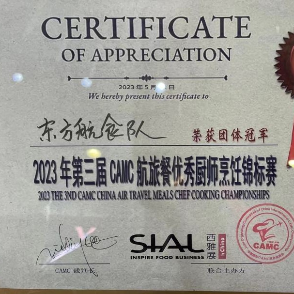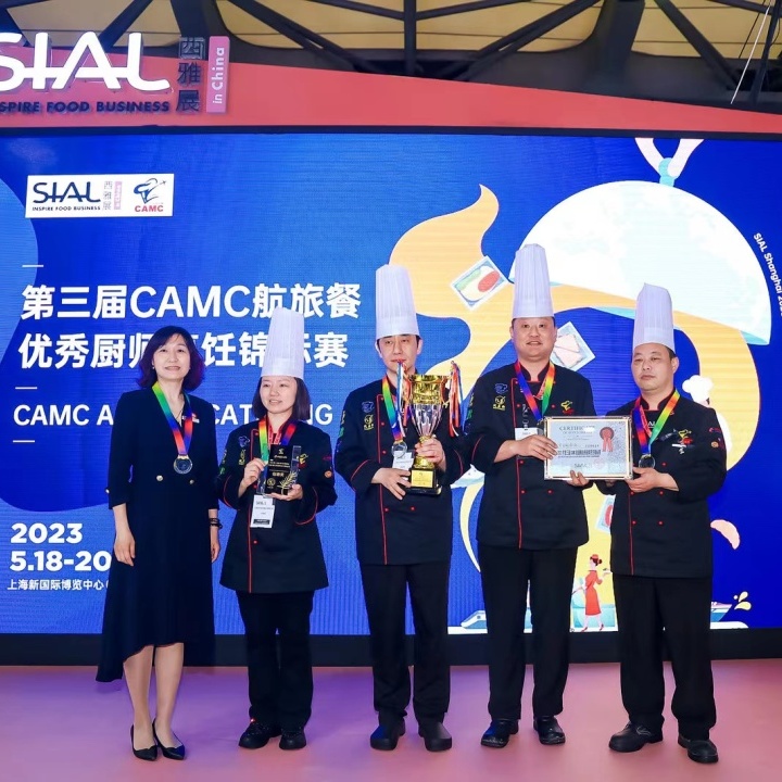 近日,第三届CAMC航旅餐优秀厨师烹饪锦标赛在SIAL西雅国际食品展(上海)展开,临空园区企业东方航空食品投资有限公司的东航食品队获得团体冠军及创意奖。