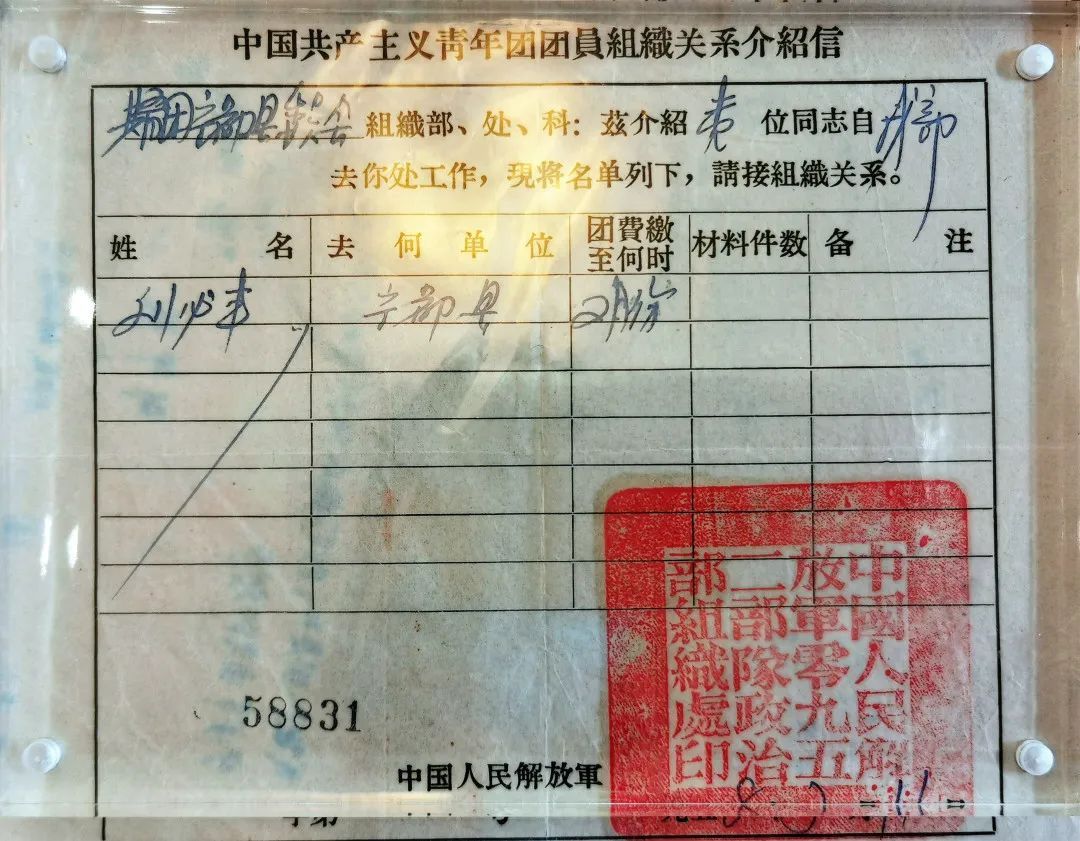 颇有年代感的中国共产主义青年团团员组织关系介绍信