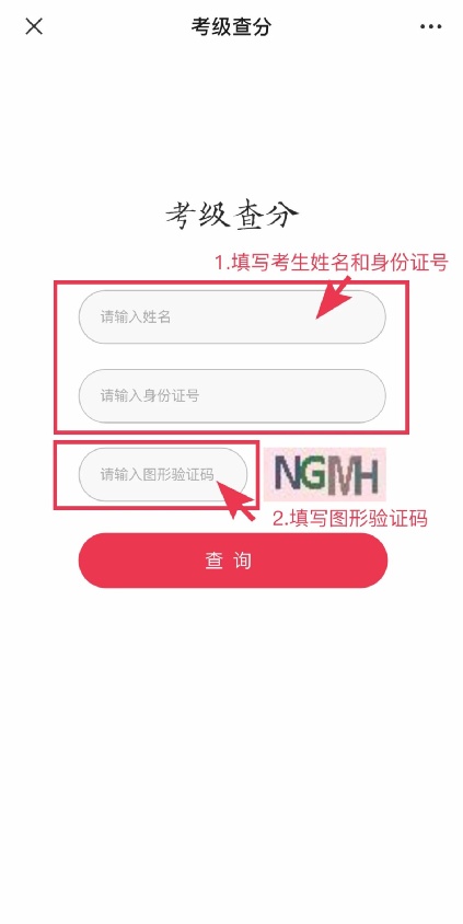 填写考生姓名和身份证件号及图形验证码,点击“查询”按钮