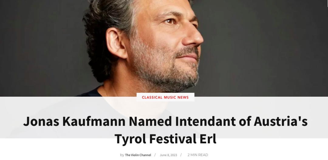 男高音尤纳斯·考夫曼将成为奥地利蒂罗尔州的厄尔音乐节( Erl Festival) 新任艺术总监。