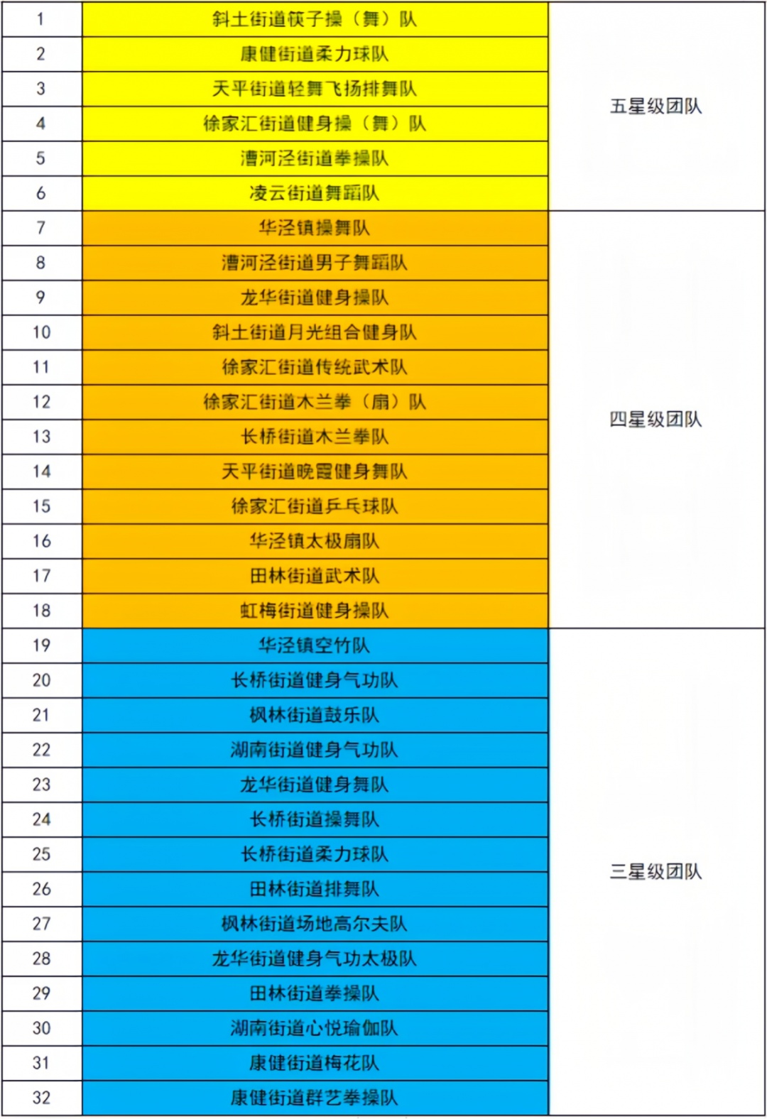 要说社区中最具活力的叔叔阿姨,必然不能错过他们——徐汇区星级体育团队。不久前,区社体中心开启2023年徐汇区星级体育健身团队评审会,13个街镇的32支健身团队参加评审。斜土街道筷子操(舞)健身队以总评分第一的好成绩、连续第二次荣登“徐汇区五星体育团队”榜首;月光组合健身舞蹈队荣获了“四星体育团队”的称号。