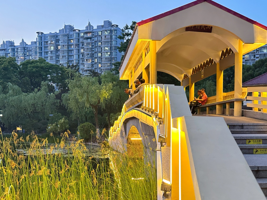 夏日晚饭后,不少市民会选择前往公园纳凉。为提升市民游客的夜间游园体验,近日,曲阳公园完成了夜间景观面貌提升,对镜湖廊桥和一号门罗马广场台阶实施了亮化工程。