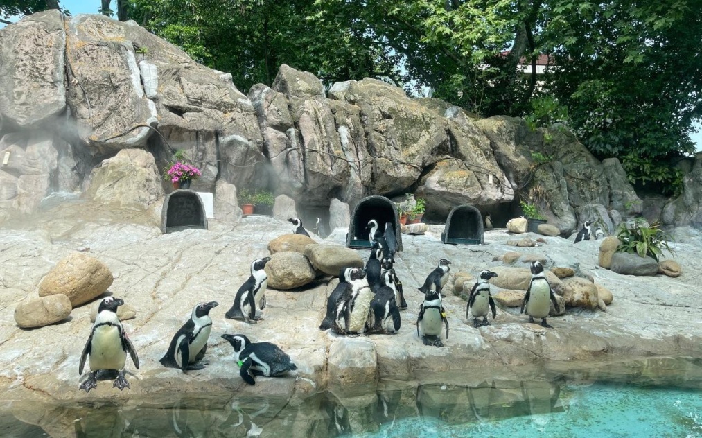 为了抵御高温酷暑,大家已经使用了各类防暑降温妙招。在上海动物园的企鹅展区,憨态可掬的斑嘴环企鹅同样也需要防暑降温。