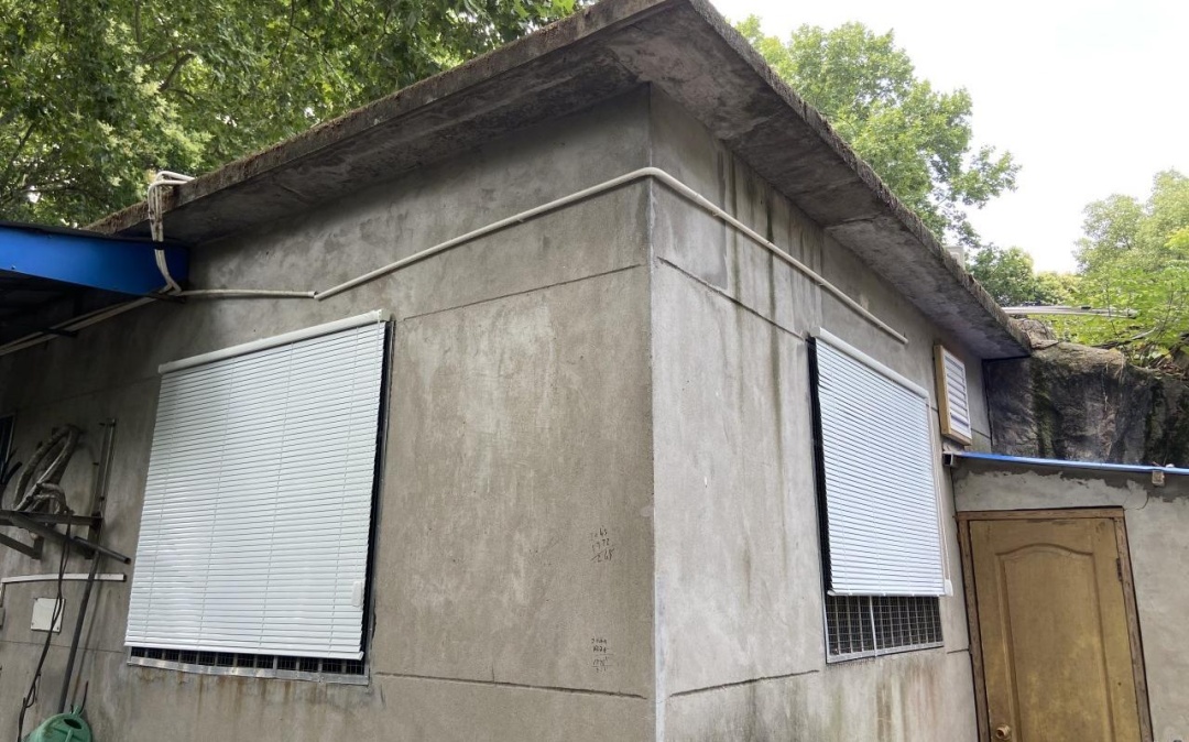 考虑到室内中间笼舍一到大夏天就会被阳光包围,室内温度可升至30摄氏度以上。夏日的阳光火辣、严重的日晒导致室内空调降温效果微乎其微。因此,经过饲养员们的查看后,决定给两扇面朝大太阳的玻璃大窗户安装百叶窗。