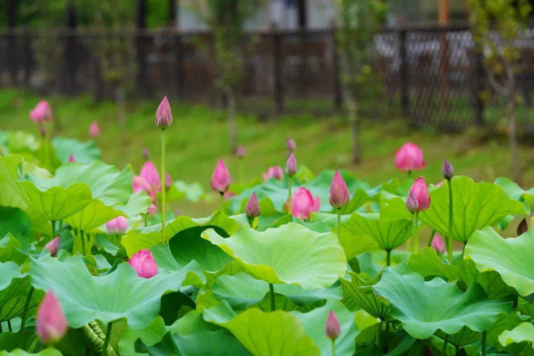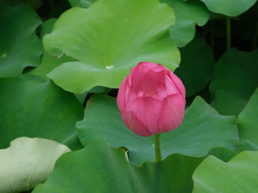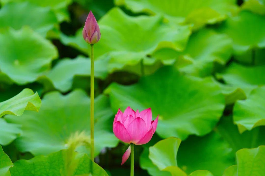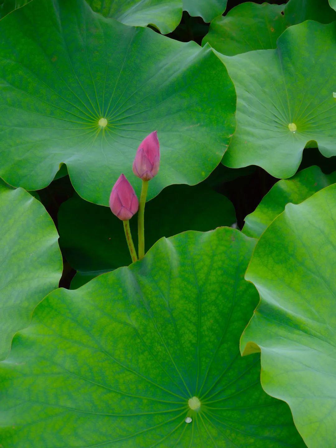 远观荷塘,一大片绿意覆盖湖面,满塘荷叶姿态各异,有像伞一样撑起的,也有像薄纱轻覆的,荷叶逢夏齐绿,荷花依次绽放,夏日清凉感十足!