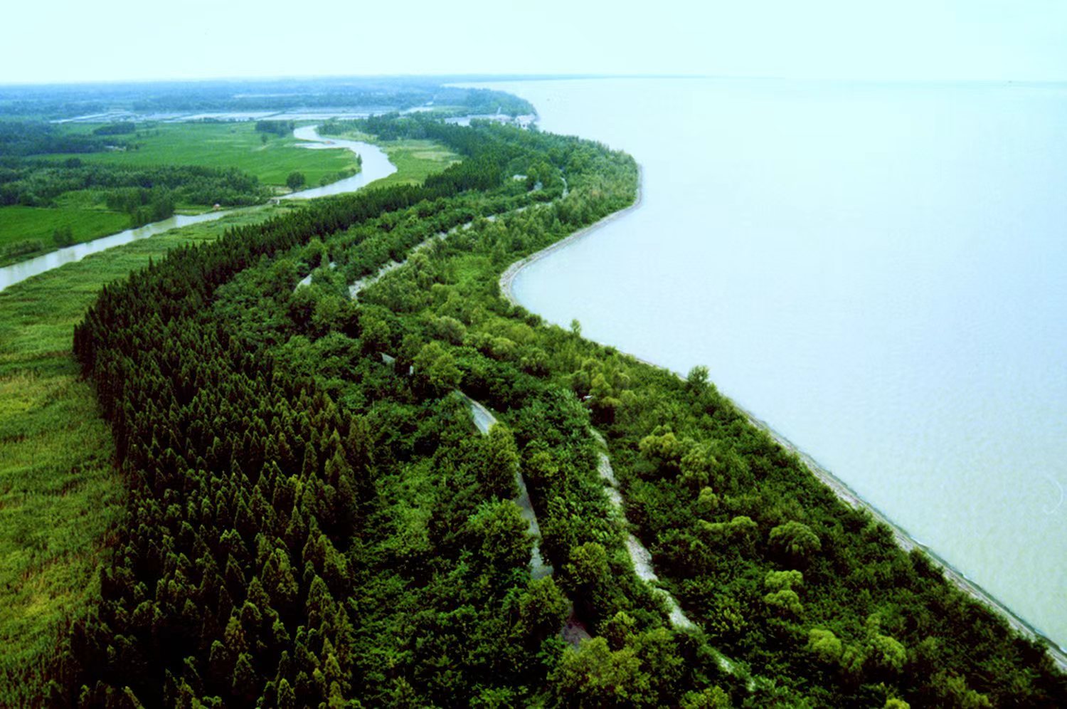 它在结构设计上也符合科学原理。卢勇指着大堤航拍图向记者介绍:“大堤远远望去像一条绿色的巨蟒匍匐在洪泽湖东岸,横亘南北60多公里。但大堤并不是笔直的延伸,而是蜿蜒曲折。建设者们有效考虑到了地形对风浪的影响,通过堤身的弯曲,避免了风浪的正面冲击,减轻湖水对堤身的冲击力。”