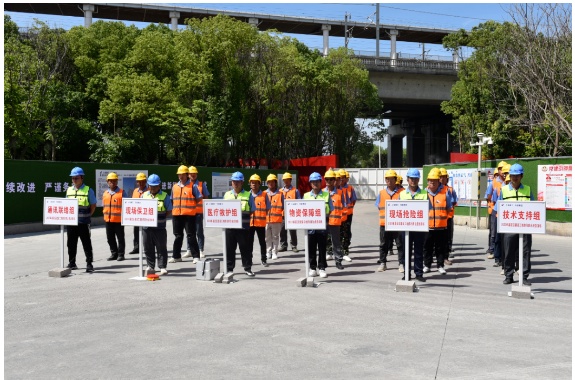 上午9时30分许,随着建设工地防汛防台应急处置演练总指挥一声令下,嘉定区建设工地防汛防台应急演练活动正式开始。演练模拟了在台风来袭、汛情紧急的情况下,应急抢险队伍迅速集结,有序组织人员疏散撤离,妥善开展应急抢险处置的情形。