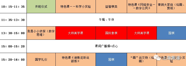 每周的课程安排都不一样,亮点多多,丰富多彩,精彩不停。