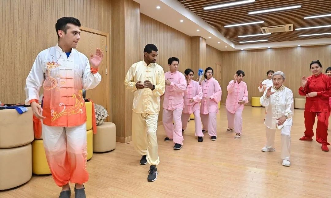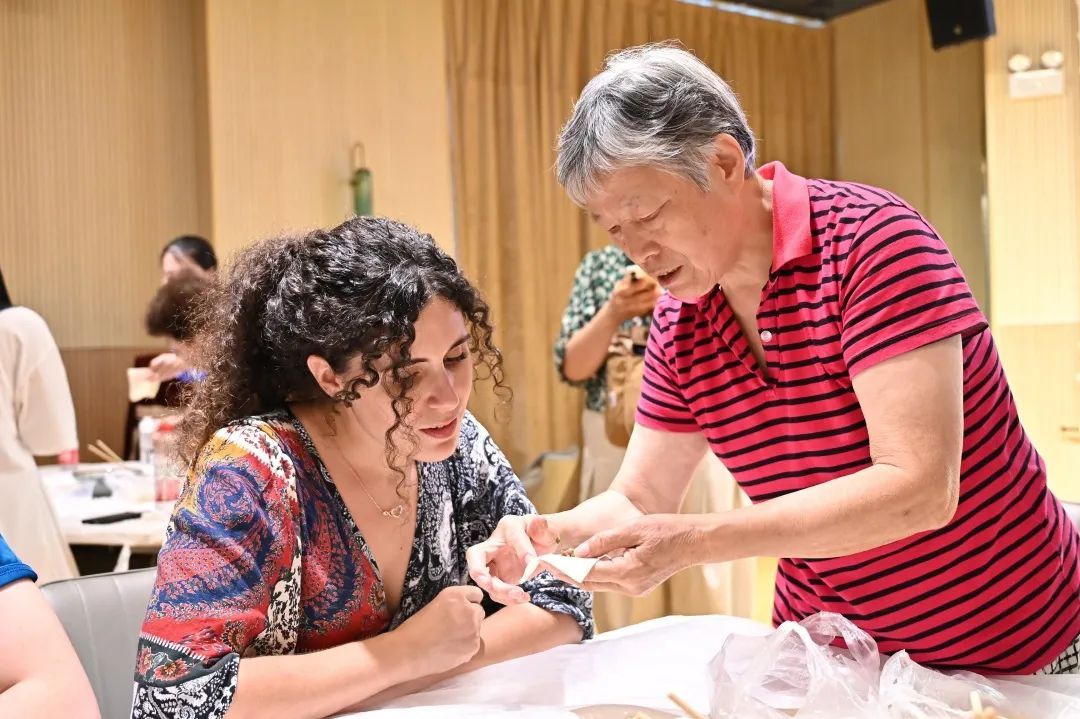 在为期两天的活动中,外国留学生们走进曹杨新村的各个角落,感受“工人新村”的魅力,足迹遍布曹杨一村、社区食堂、社区文化中心......期间,他们与社区居民互动交流,体验了包饺子、吃家宴、跳广场舞等多种活动。在文化活动中心,他们参加了社区传统民俗文化嘉年华,体验了卢氏心意拳、竹编、越剧换装、太极戏曲、丝网花制作、中国结编织、葫芦丝弹唱等非遗项目,还聆听了金乐朝阳管乐团带来的专场演奏会,切身感受了曹杨新村地区独有的民风民俗。“我觉得曹杨新村是一个非常有趣和美丽的地方,我可以感受到中国人的热情和友好。”“我喜欢这里的建筑和环境,很有历史感和艺术感。”“我最喜欢的是跟社区居民一起包饺子和吃家宴。我觉得这是一种很温馨和亲切的体验,让我感受到了中国人的热情好客和友好。我也很喜欢跟他们聊天,了解他们的生活和想法。我觉得这样可以增进我们之间的了解和友谊。”