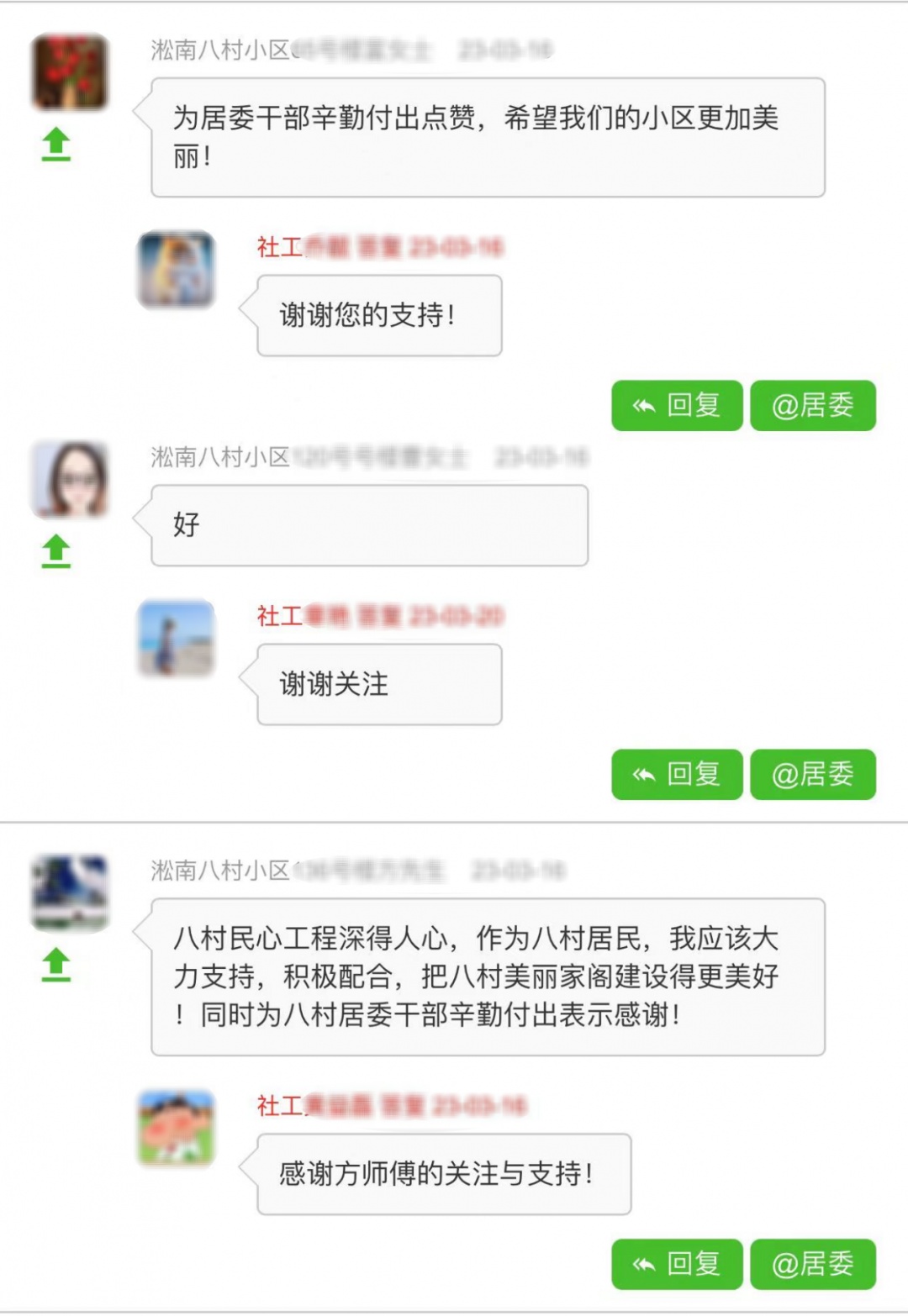 居委在与物业、业委会、居民代表共同商议后决定将小区现有的简易铁门置换为电子防盗门并配备对讲机系统。意见征询工作于2022年底正式启动,由淞南八村居委工作人员、淞南八村业委会、各楼栋楼组长通过上门、电话联系等方式共同完成。