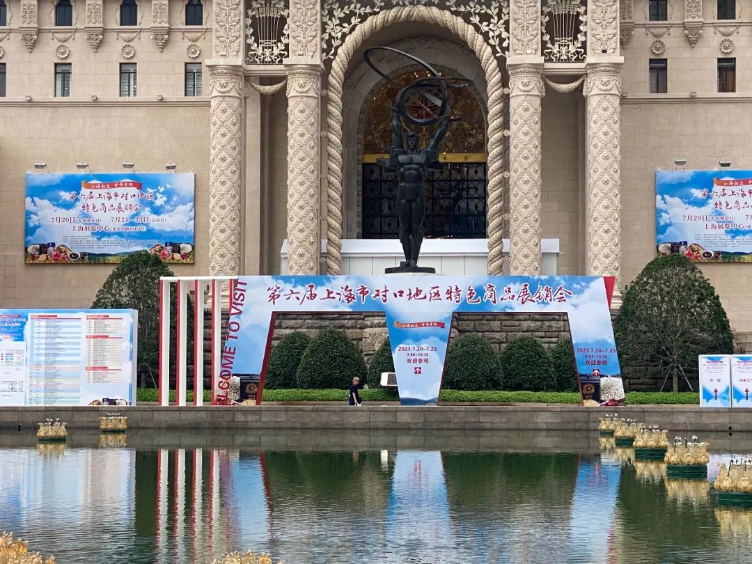 日前,2023年上海市对口地区特色商品展销会在上海展览中心举办,来自新疆、云南、贵州、湖北、福建等地的特色商品集中销售。