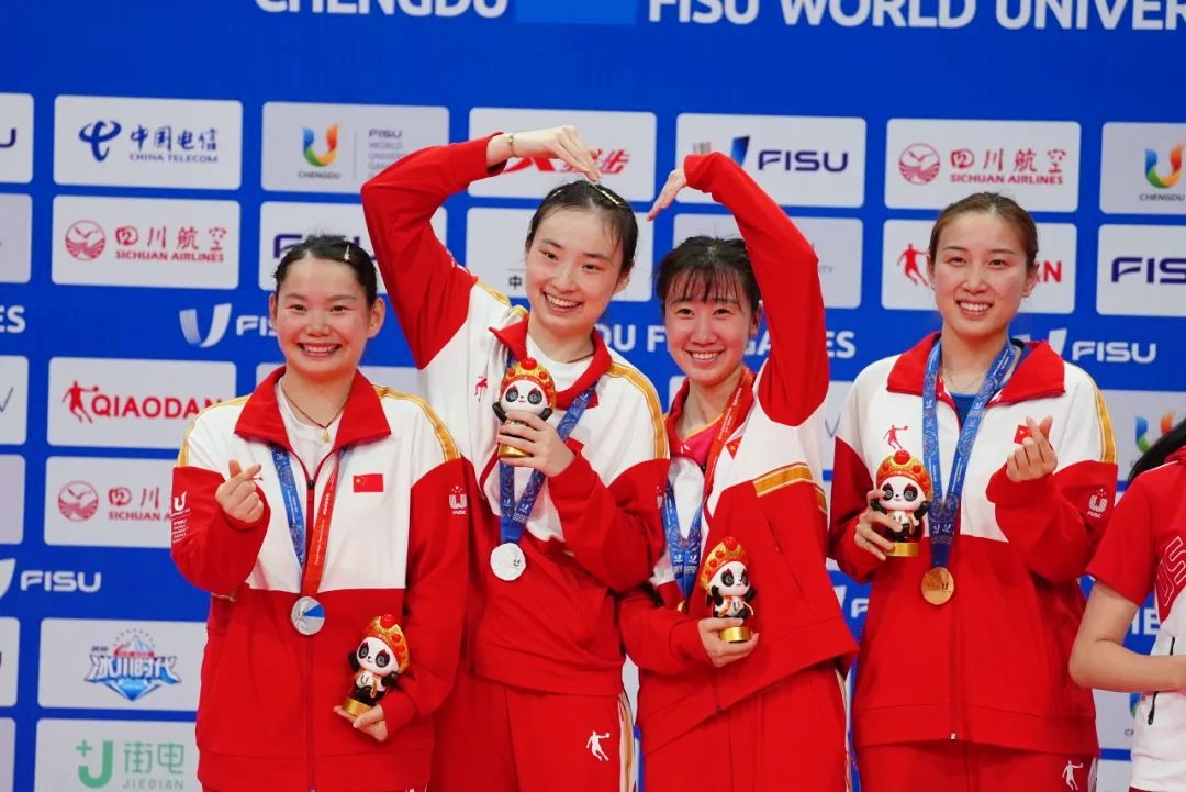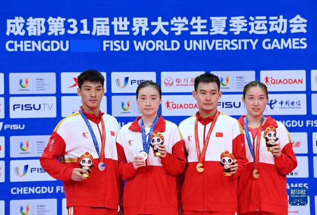 8月5日,第31届成都世界大学生运动会乒乓球项目圆满落下帷幕,中国乒乓球代表队奋勇拼搏,强势包揽7个小项的全部金牌,实现了连续两届大运会乒乓球项目的“全冠王”!其中来自上海体育大学的钱天一在本届比赛中收获女团、混双、女双和女单金牌,加冕本届大运会“四冠王”。