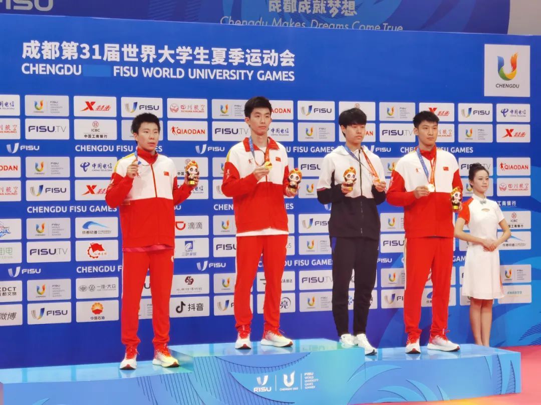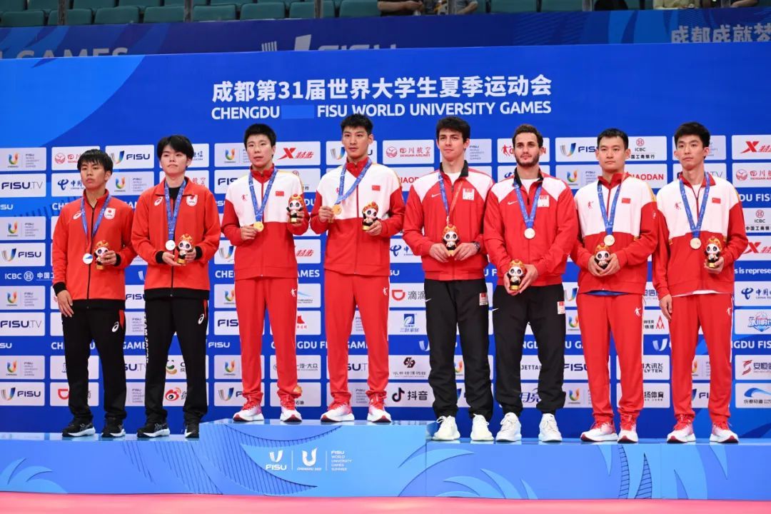在男双决赛中,薛飞/徐瑛彬与滨田一辉/谷垣佑真对决焦灼,在前六局中战至3:3平。双方进入第七局,薛飞/徐瑛彬抢抓开局,气势如虹,随后一鼓作气,没有给日本队喘息的机会,最终以11:7为中国队再夺一金,国乒第4次夺得大运会乒乓球男双冠军,同时周恺/刘丁硕获得男双铜牌。