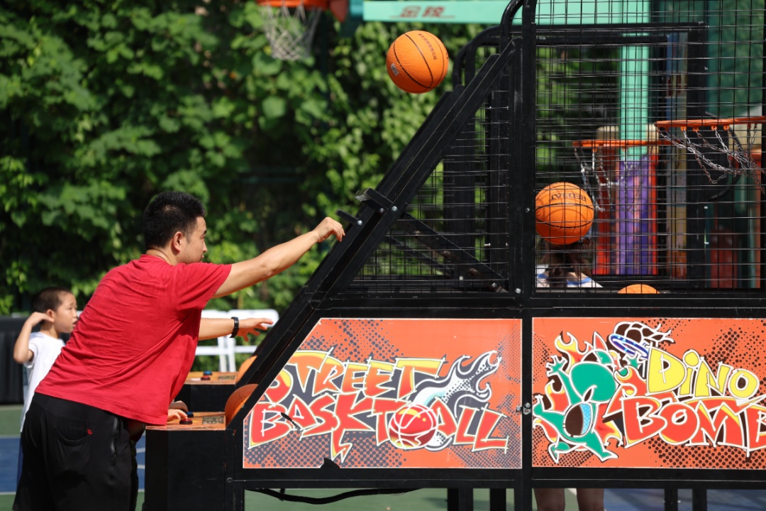 此次夏季嘉年华精心设计了多个有趣的项目,充分利用了宏北篮球场的两片标准篮球场地,为参与者带来了不一样的运动体验。旱地冰壶以极具创意的方式将冰壶运动搬上了旱地,这种趣味十足的运动方式,让大家体验到了冰壶的乐趣,同时也锻炼了精准度和协调性;粘球射门凭借其独特的挑战性吸引了许多家庭参与,既考验参与者的眼力和准确性,也增加了活动的互动性;篮球机投篮大赛成了这个嘉年华的一大亮点,每个参与者都能感受到那种站在球场上的激情,挥洒汗水,追求完美投篮的愉悦感;运球折返跑不仅考验参与者的运球技巧和速度,还增加了团队协作的成分。