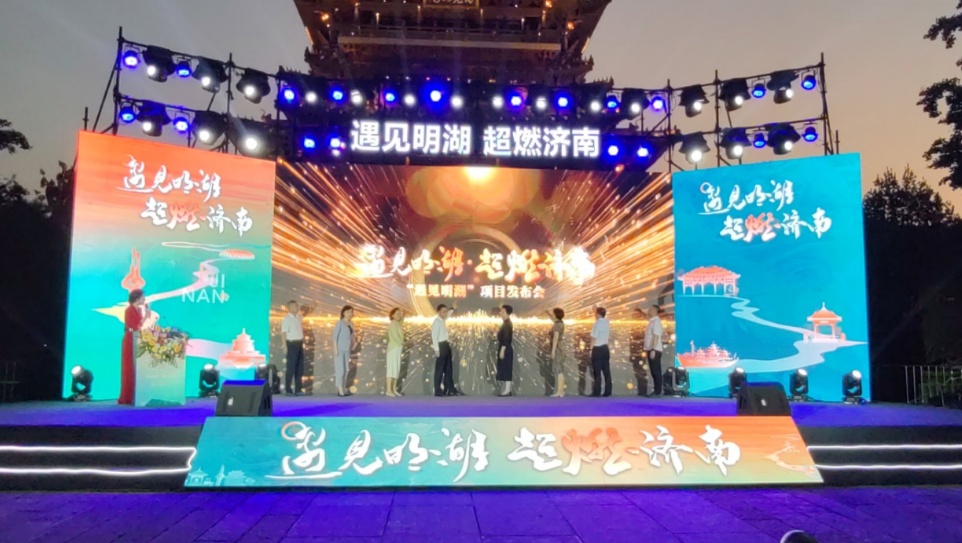 发布会上启动“遇见明湖”项目,超然楼华彩初上,标志着网红济南打造、泉城夜经济发展拉开崭新序幕。