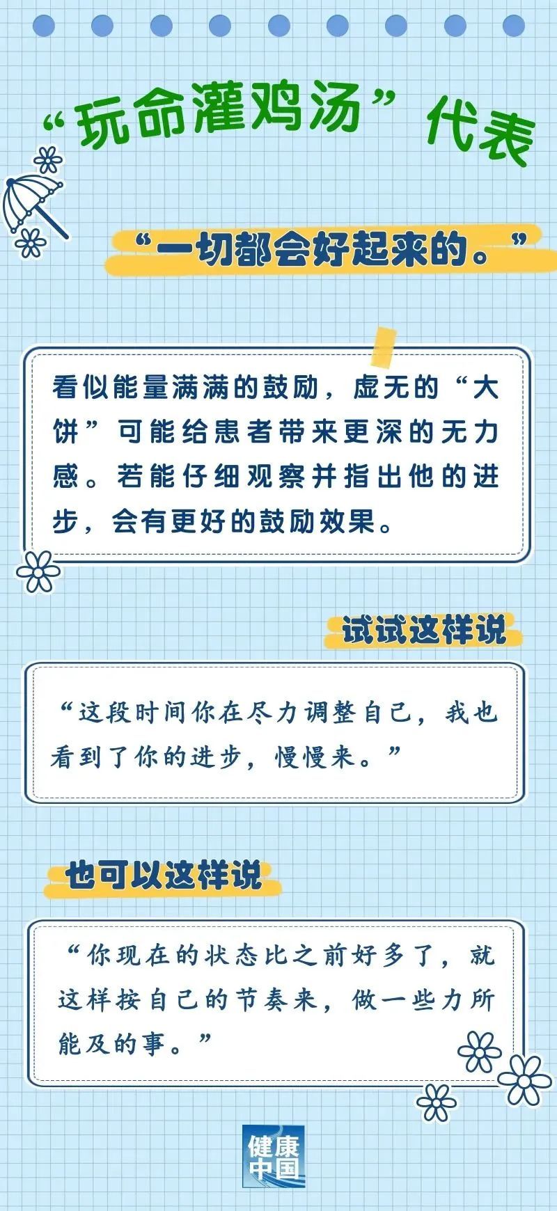 那么,面对抑郁症患者时,哪些话该说,哪些话不该说呢?下面这些看似安慰的话您说过吗?