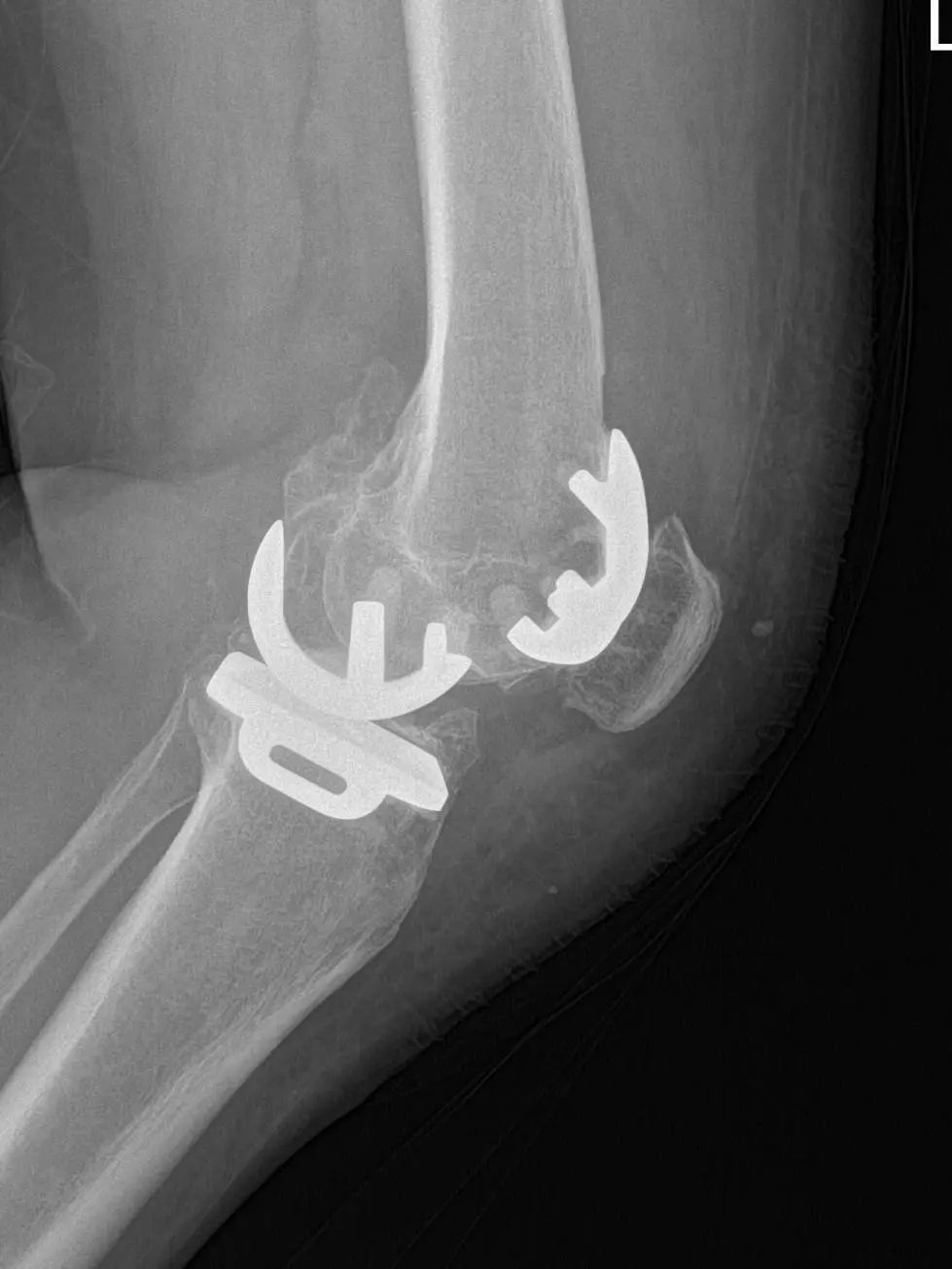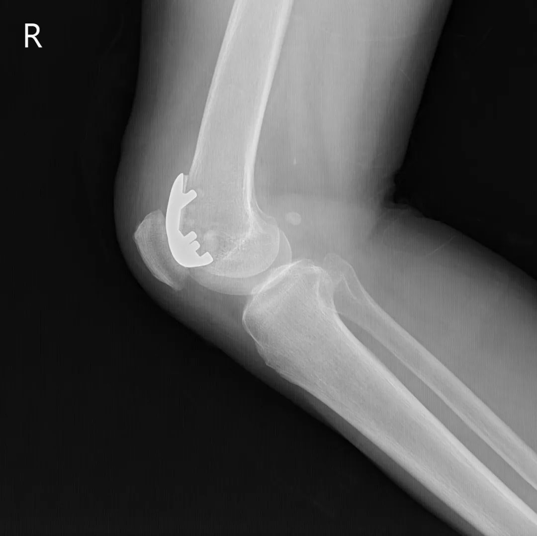 67岁的邵阿姨,双膝关节疼痛10余年,疼痛主要集中在屈伸膝关节时髌骨下。长期口服及外用药物治疗效果欠佳,反复加重,双膝的x线检查提示主要为髌股关节的退行性骨关节炎。程飚主任结合患者症状,影像学结果,体格检查,发现邵阿姨主要问题集中在髌股关节,膝关节间隙,内外侧髁,胫骨平台均可,为解决邵阿姨痛苦,尽可能保留关节,程飚主任决定对邵阿姨进行双侧膝关节的髌股关节表面置换,截骨量较少,邵阿姨第二天就能下地活动了,屈伸关节也不痛了,对手术疗效表示非常的满意。