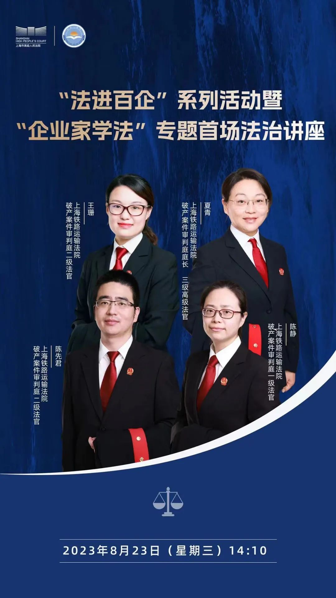 上海市高级人民法院与上海市工商业联合会共同举办“法进百企”系列活动暨“企业家学法”专题法治讲座,首场讲座将邀请上海铁路运输法院破产审判庭法官以“企业经营法律风险防范”为题进行授课。本次讲座围绕股东出资和股权转让、常见合同纠纷、公司对外担保的法律风险和防范建议三个专题展开,将结合审判实践中真实案例,对企业风险防范和合规审查方面存在的漏洞和误区进行风险提示,敬请期待!