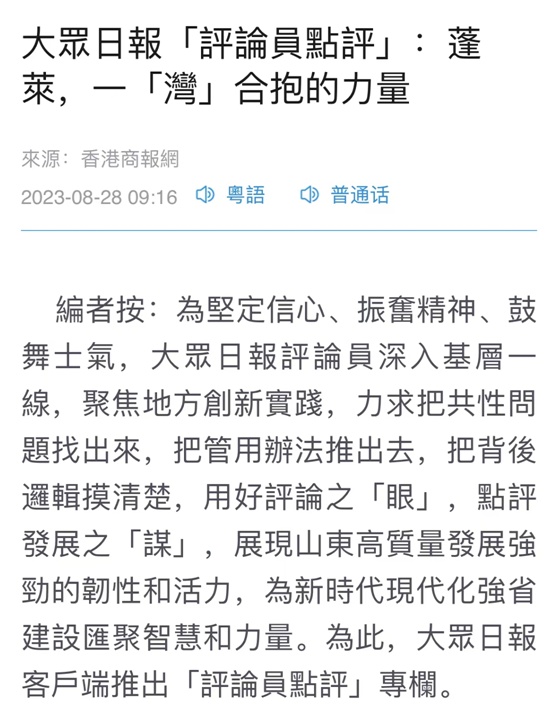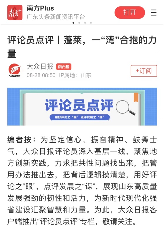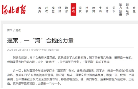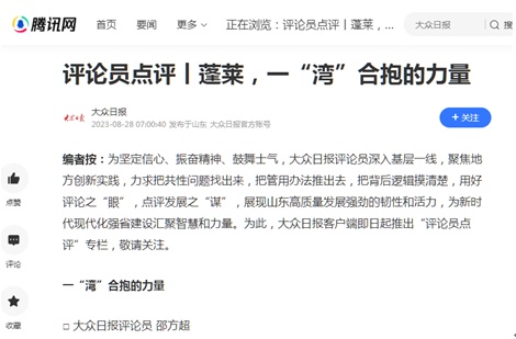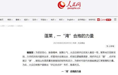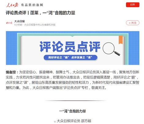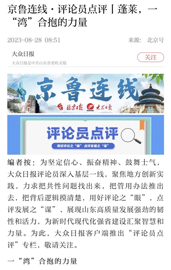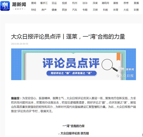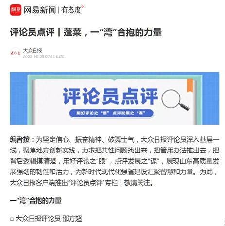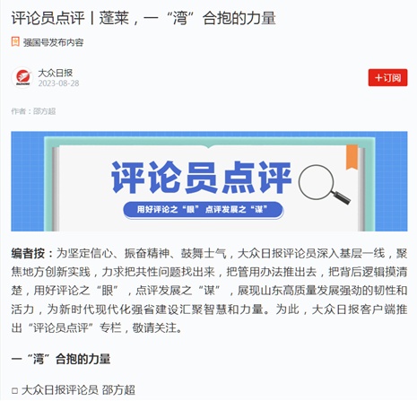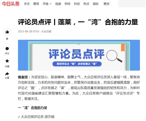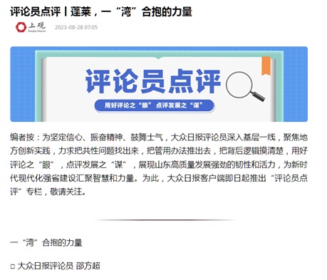 8月28日,“评论员点评”栏目推出第二个作品——《蓬莱,一“湾”合抱的力量》。
