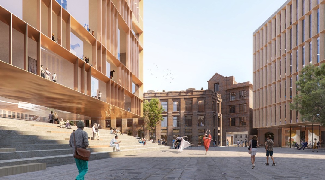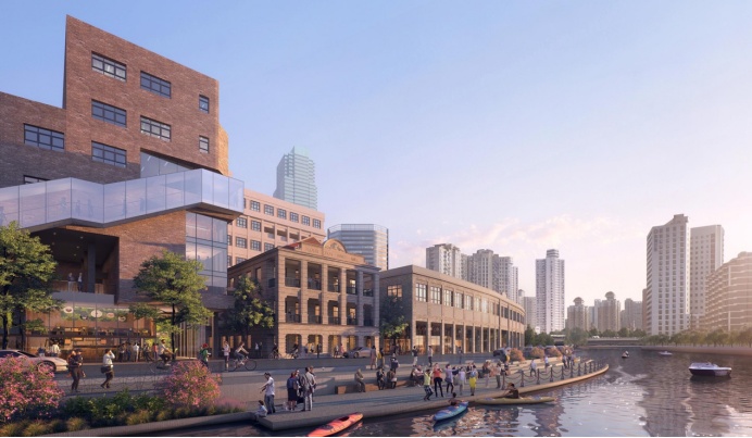 虹口嘉兴01单元延续地区空间基因,探索新的建筑形态与保留建筑的共生关系,以历史尺度和肌理打造刻印城市文脉的城市空间。
