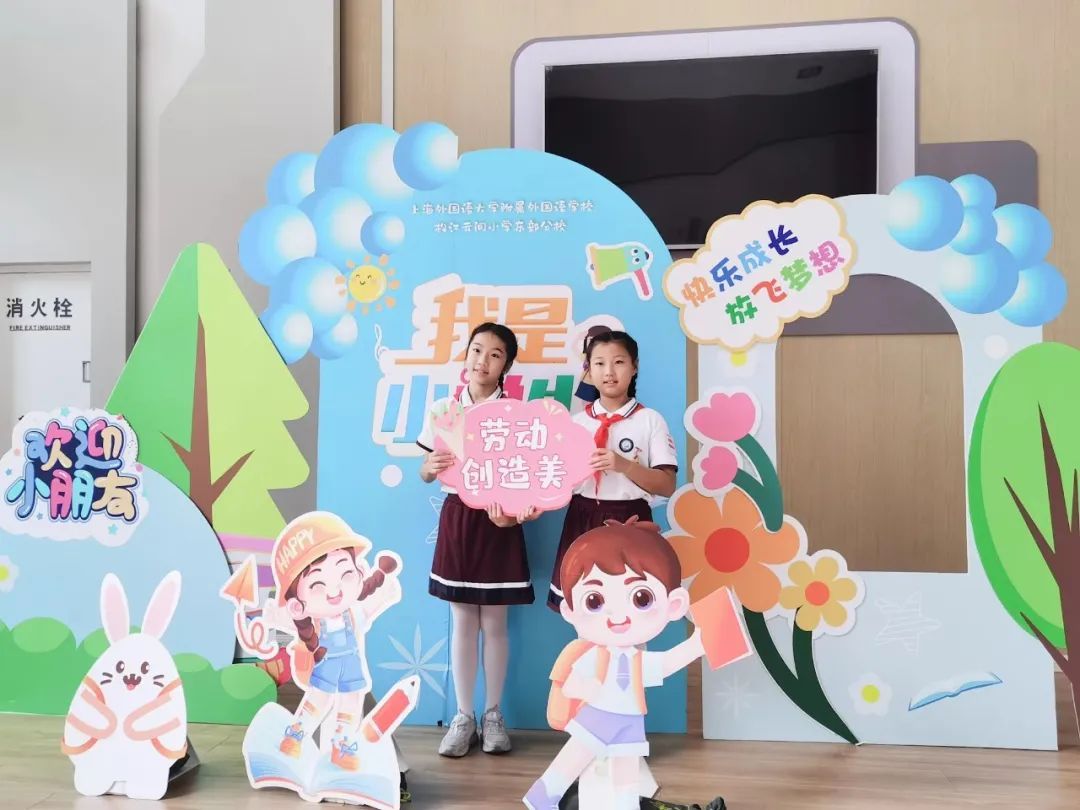 一大早,上海外国语大学附属外国语学校松江云间小学东部分校(以下简称“上外云间小学东校”)的孩子们一进教室就被“小考官”拦住,一场包含辨识调味品、认识五谷杂粮、剥毛豆、缝纽扣、拧螺丝、择芹菜等“考题”的劳动技能争章大比拼等着他们。