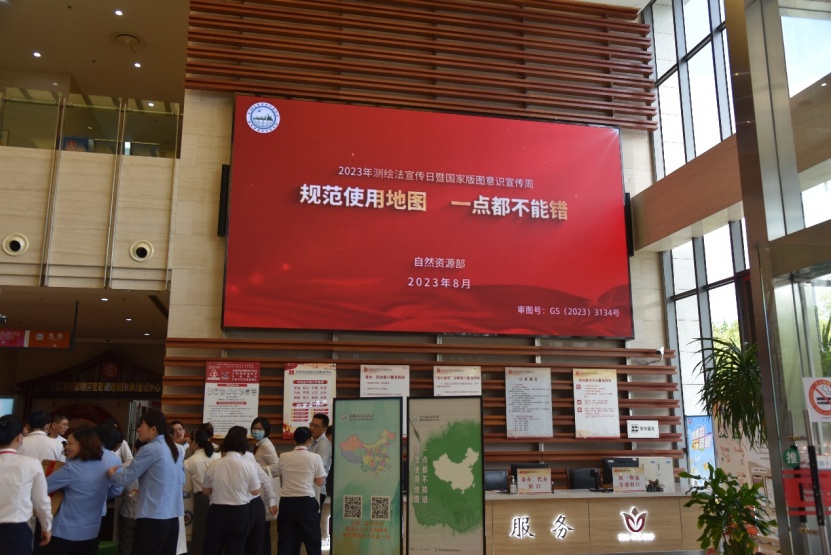崇明区规划资源局在区行政服务中心入口处通过设立宣传咨询台、设置宣传展板,播放宣传视频、发放宣传资料、趣味答题等多种形式进行立体式宣传,普及测绘法律知识,进一步强化公众的国家版图意识,让“规范使用地图”成为全民自觉。