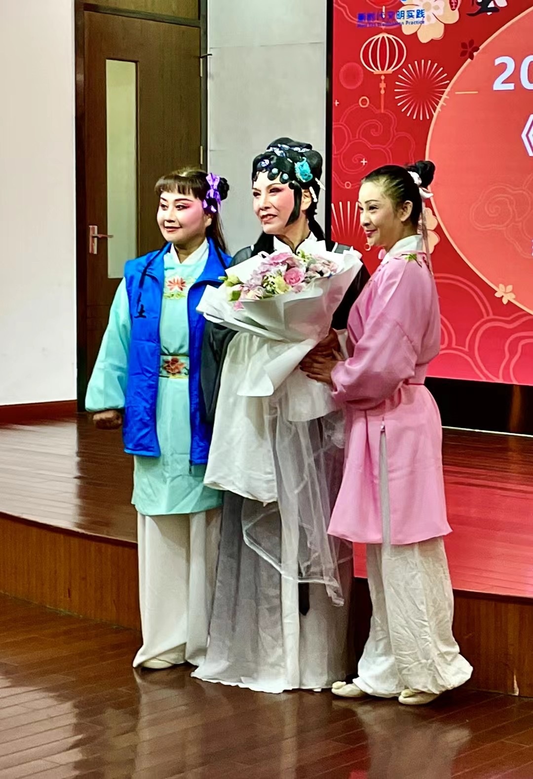 虽然没有名家参演,但活动现场的掌声与喝彩声却延绵不绝。“她们不是专业演员,但唱起越剧也是有模有样,妆造、道具也精美!”观众席中陈阿姨反问道:“唱咯灵伐?”