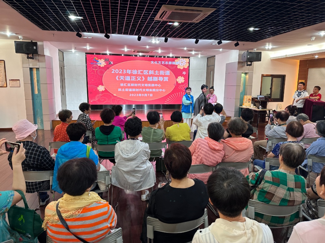 据了解,此次演出人员均出自斜土街道越剧艺术团。相关负责人葛彦表示,斜土街道越剧艺术团组建于2003年,成员以社区居民为主,大家因喜欢越剧而走到一起。如今,团队已从十几人的小规模拓展成为50余人的大团队,平均年龄50岁。这些年,除了开展志愿服务、文化惠民活动,“逸夫舞台”上也频频有他们的身影。10月底,团队将正式上演越剧《天道正义》。