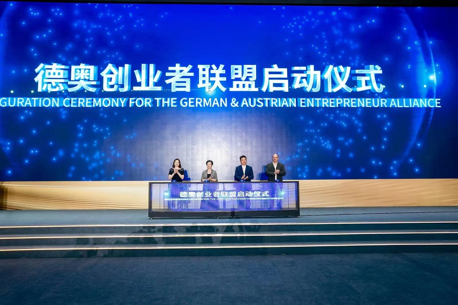 为加强优势互补,搭建产业、人才双向交流平台,江苏省人民政府外事办公室副主任杨菁、金坛区政府区长胥亚伟、德奥创业者联盟秘书长徐知遥、尼库尔工业技术服务公司总经理Wolfgang Nikol共同启动“德奥创业者联盟”。德奥创业者联盟的成立旨在将德国、奥地利高质量创业华人“引进来”,并帮助优秀国内企业创新科技产品“走出去”。