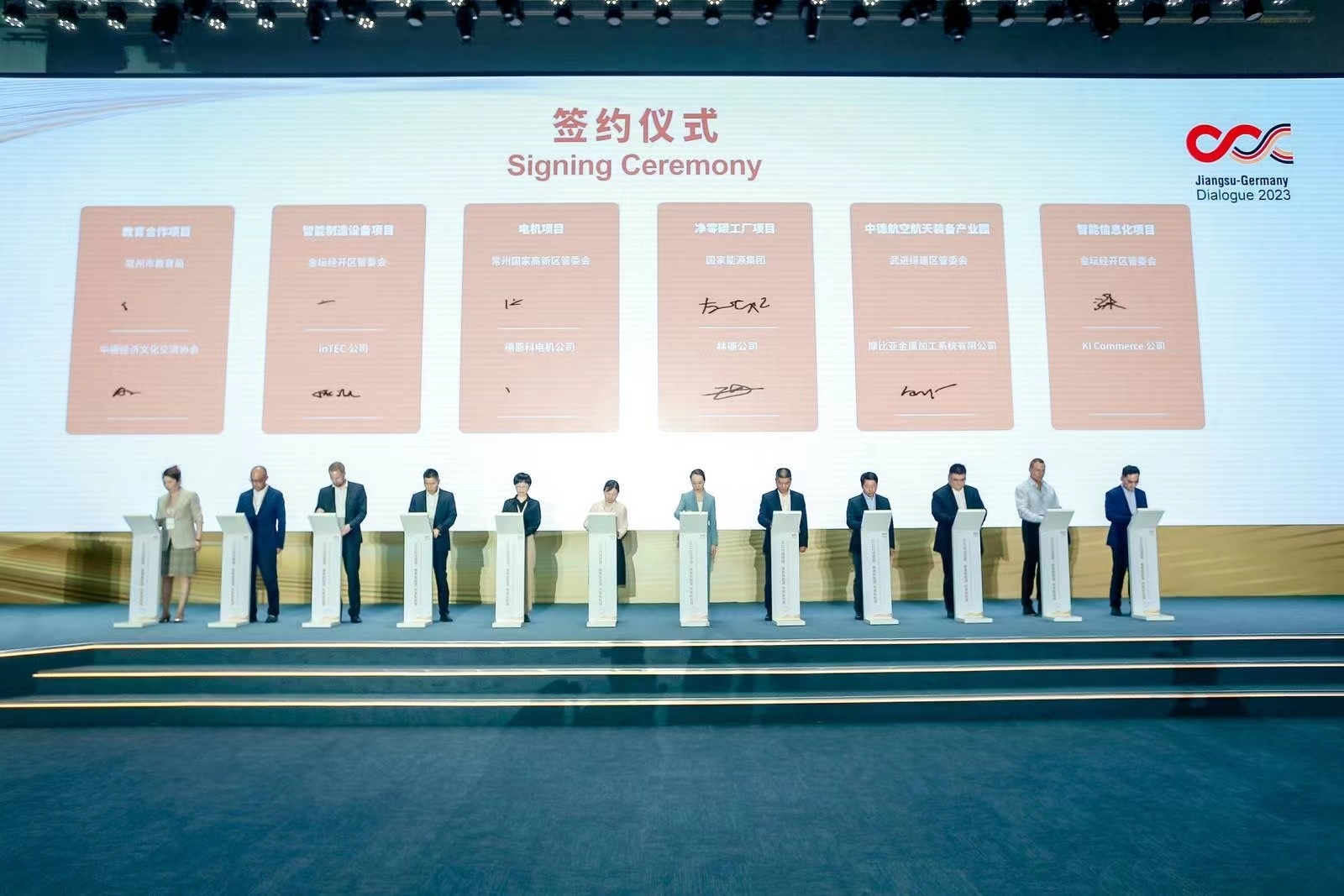 活动现场,涵盖新能源、新材料、智能制造、生物医疗等领域的11个重点中德合作项目签约,总投资2.56亿欧元。德迅、博西家电、科德宝集团、SENEC GmbH等近60家企业参加中德企业对接会,德国啤酒嘉年华等文化交流活动同步开幕。