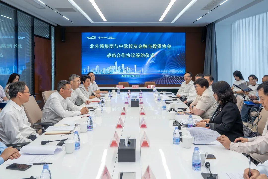 9月13日,北外滩集团与中欧校友金融与投资协会签定战略协议,共同助推北外滩发展。同时,首批四家迁入的中欧校友企业与北外滩集团集中签约。中欧国际工商学院院长汪泓,区委副书记、区长吕鸣,区委常委、副区长关也彤,中欧校友关系与教育发展办公室运营主任、中欧校友总会副会长傅丹阳,中欧国际工商学院校友总会副会长、中欧校友金融与投资协会会长陈智海,中欧校友金融与投资协会联席会长周晔 ,中欧校友金融与投资协会执行会长蒋洪等出席并见证了签约活动。