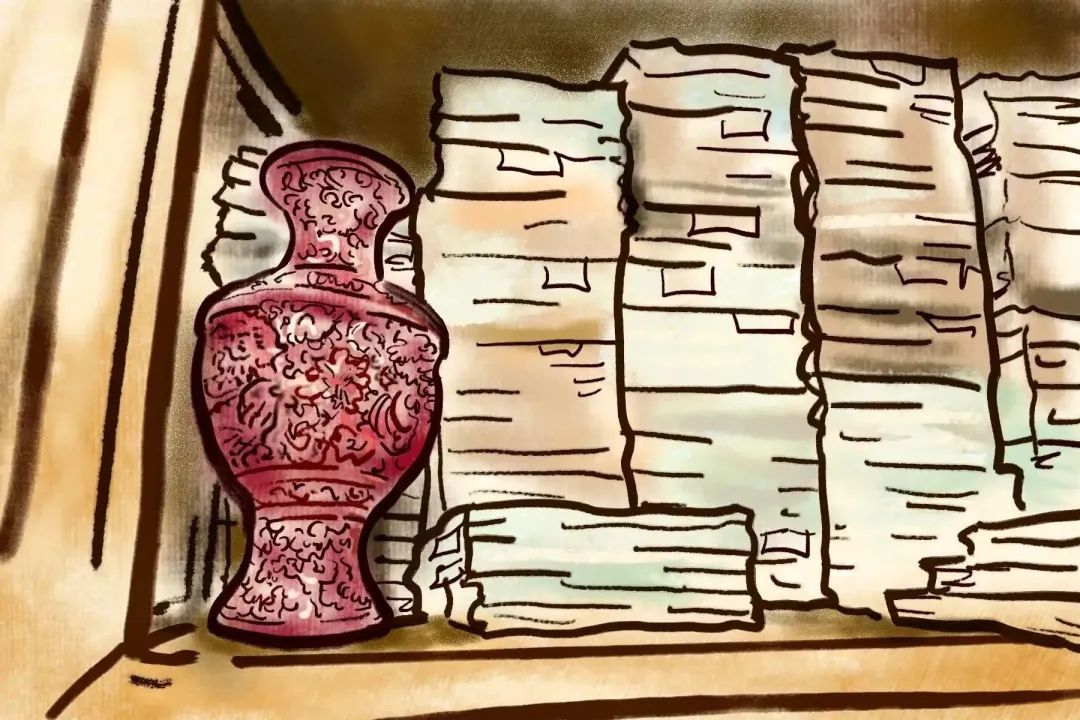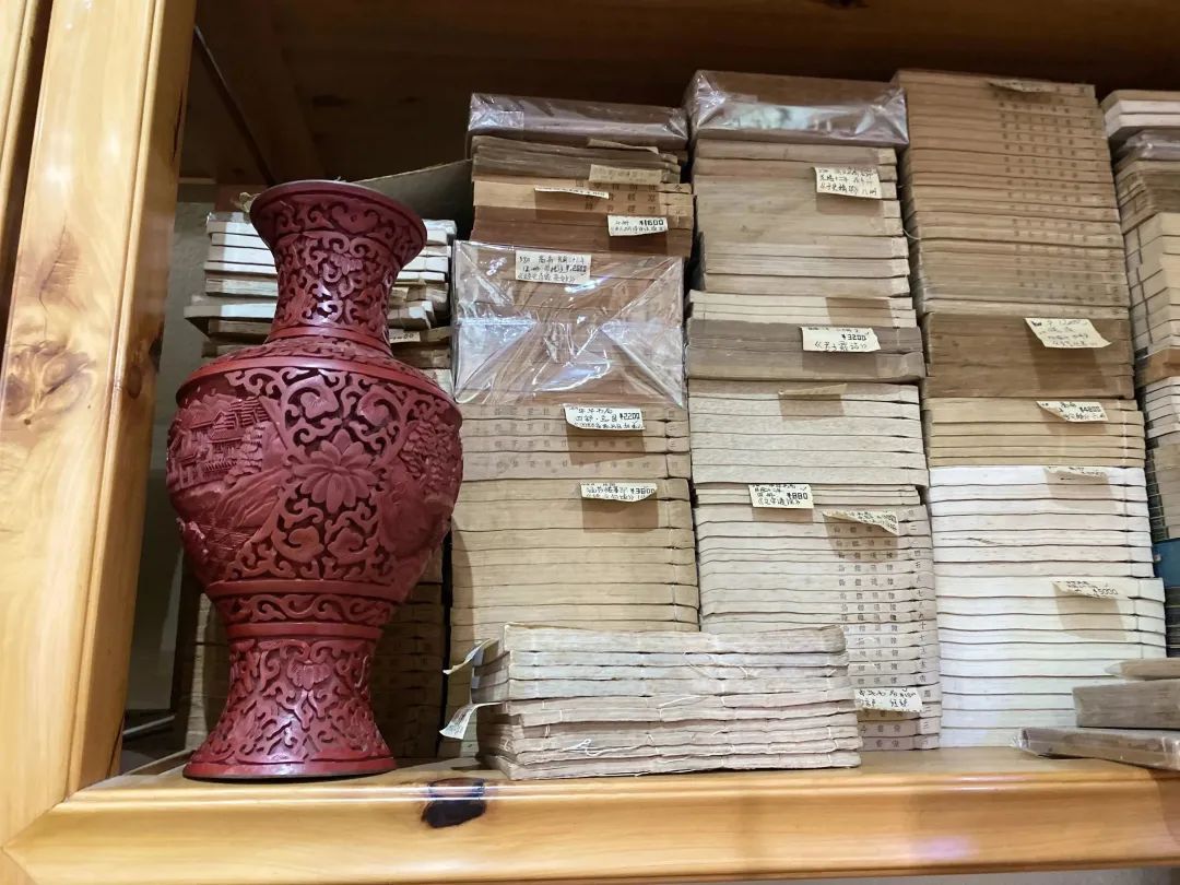 空间的每个细节都透着巧思,细腻精巧的红漆器花瓶在层层堆叠的古书中,找到了属于自己的一片天地,岁月静好,是那么的恰如其分。