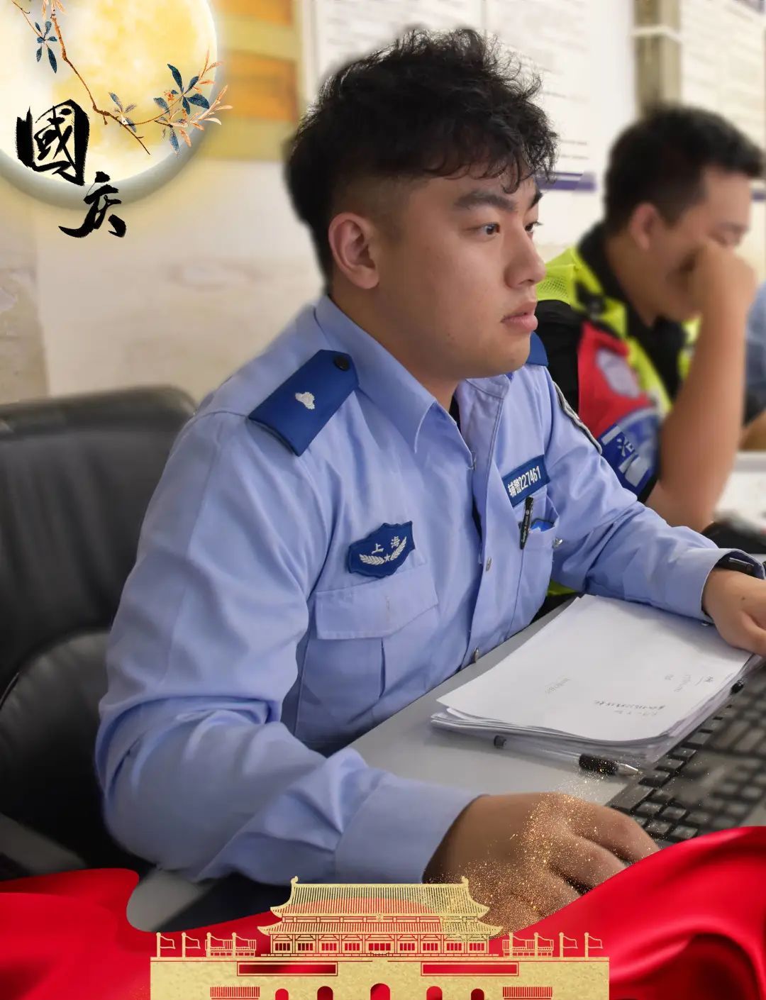在祖国华诞来临之际,他们一如既往守护万家灯火,用藏蓝妆点中国红