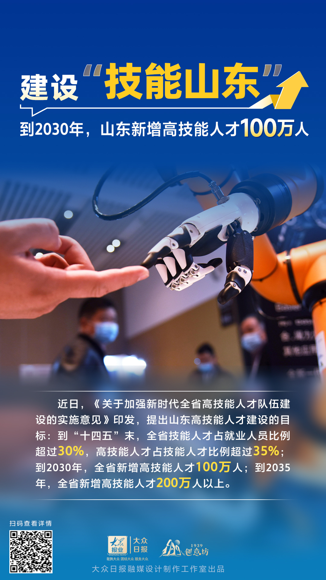 海报|建设“技能山东”!到2030年,山东新增高技能人才100万人