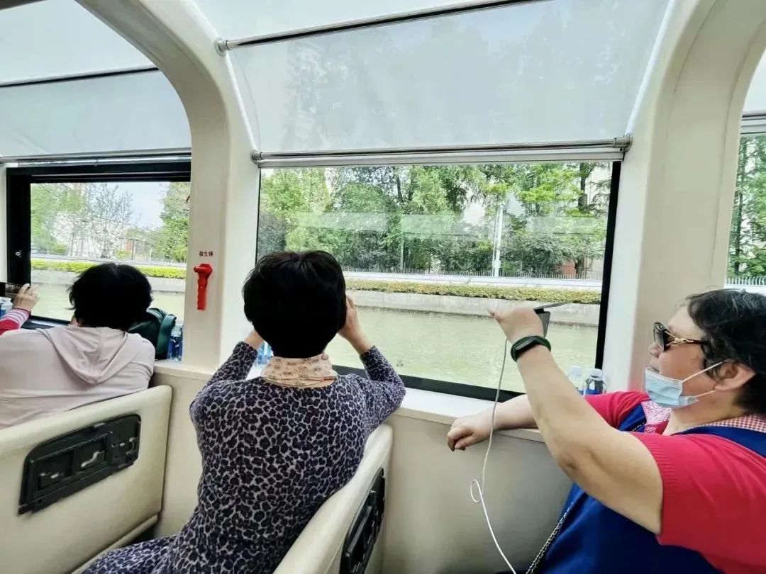 游船在苏州河上蜿蜒穿梭,华东政法大学长宁校区内的中西特色建筑、苏州河畔的美景尽收眼底。“现在秋天了,天气不冷不热,随着游船看风景,心情也特别舒畅。”秦阿姨说。
