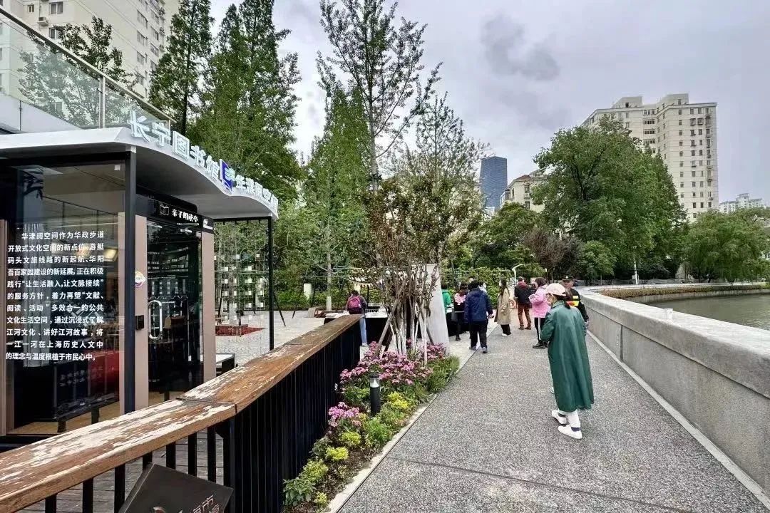 今年4月,结合长宁读书节开幕,长宁又在中山公园码头文旅线路的起点,建成启用了“华漾阅空间”,布局数字化的阅读设备及“朗读亭”,着力塑造“文献、阅读、活动”多效合一的公共文化生活空间,让市民游客可以沉浸式了解江河文化,丰富旅游体验。