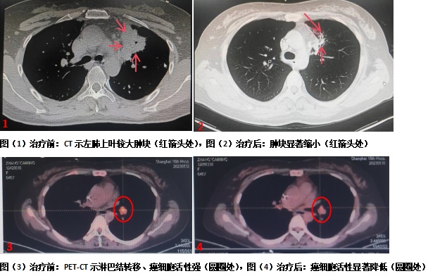 经过一年的治疗,张女士疗效显著,曾经的主要症状疼痛消失,日常生活几与健康人无异,同时PET-CT显示癌症原发灶被灭活,局部转移灶肺门淋巴结和远处转移病灶(髂骨转移)癌细胞活性明显被抑制,病灶显著缩小,整体癌症治疗获得了绝大部分缓解。绝境逢生,超乎想象的治疗效果也给张女士带来了信心,重燃了其对生活的希望。
