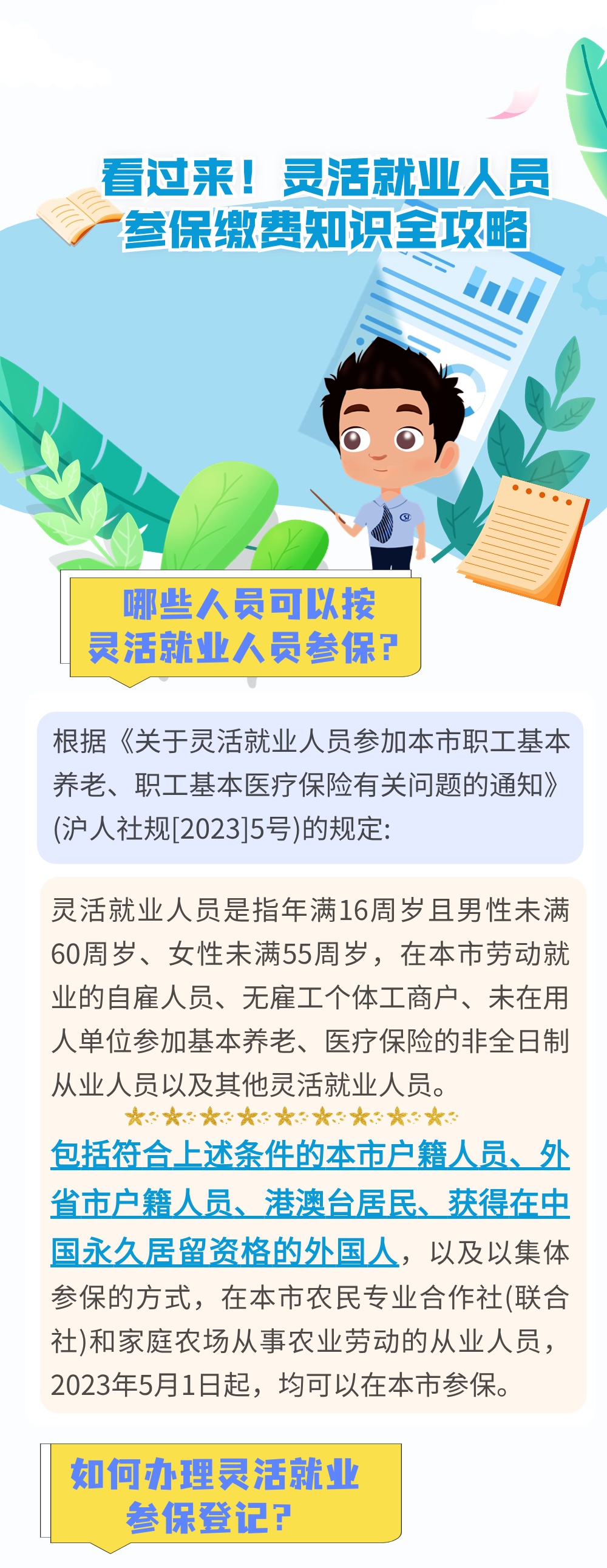 灵活就业人员需携带个人有效身份证件原件(或电子亮证)至就近的街镇(乡)社区事务受理服务中心办理参保手续。(办理材料可点击链接查询:个人办理参保手续)