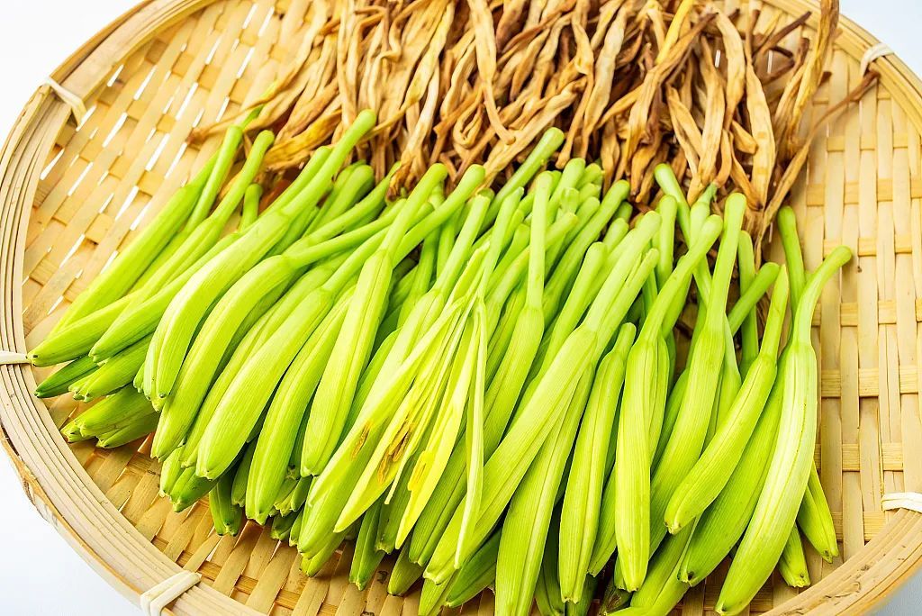 因此最好选择干黄花菜食用,若想吃新鲜黄花菜,吃前将黄花菜的花蕊摘掉,再焯水十几秒,然后放入冷水中浸泡1小时以上,则可降低毒性。
