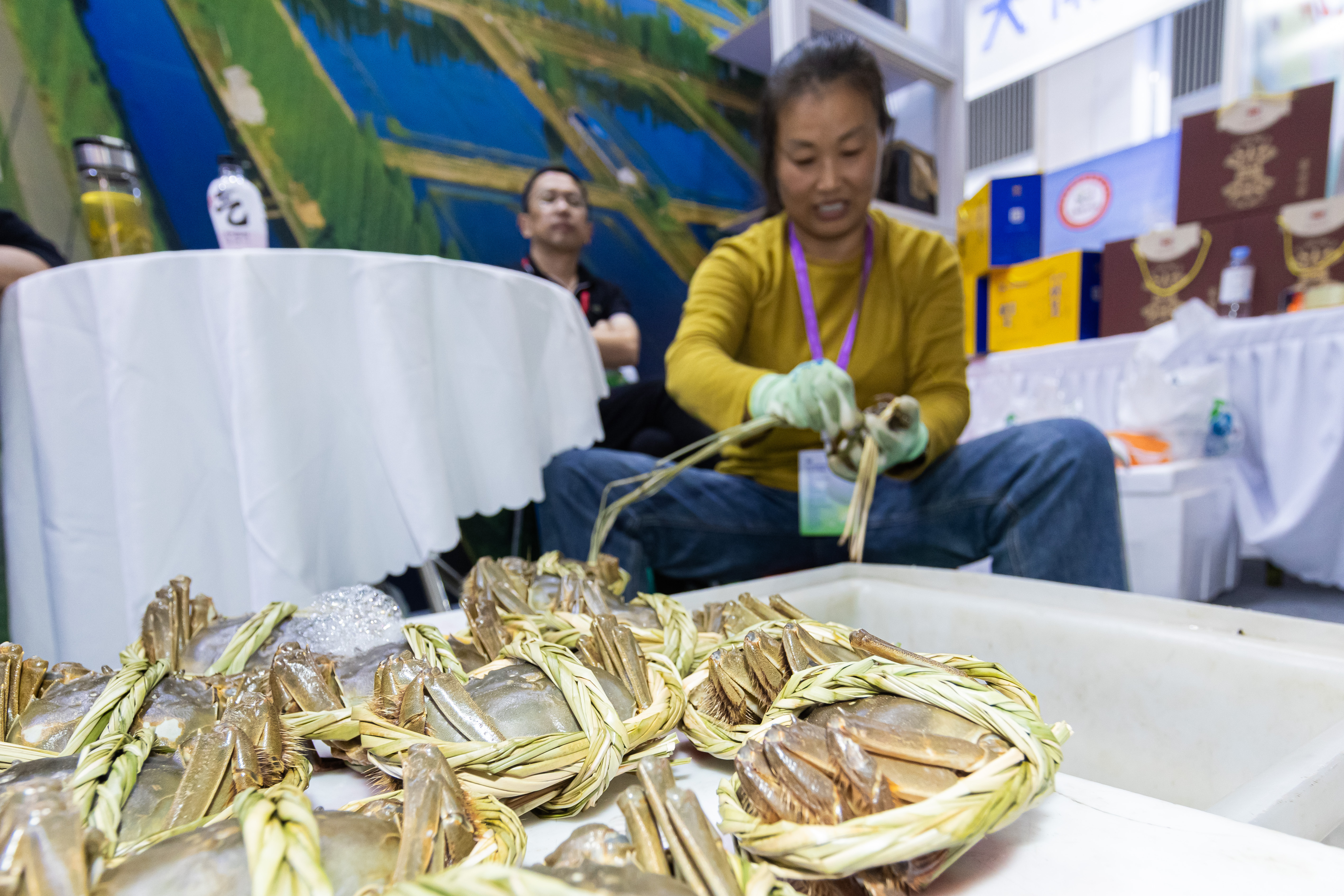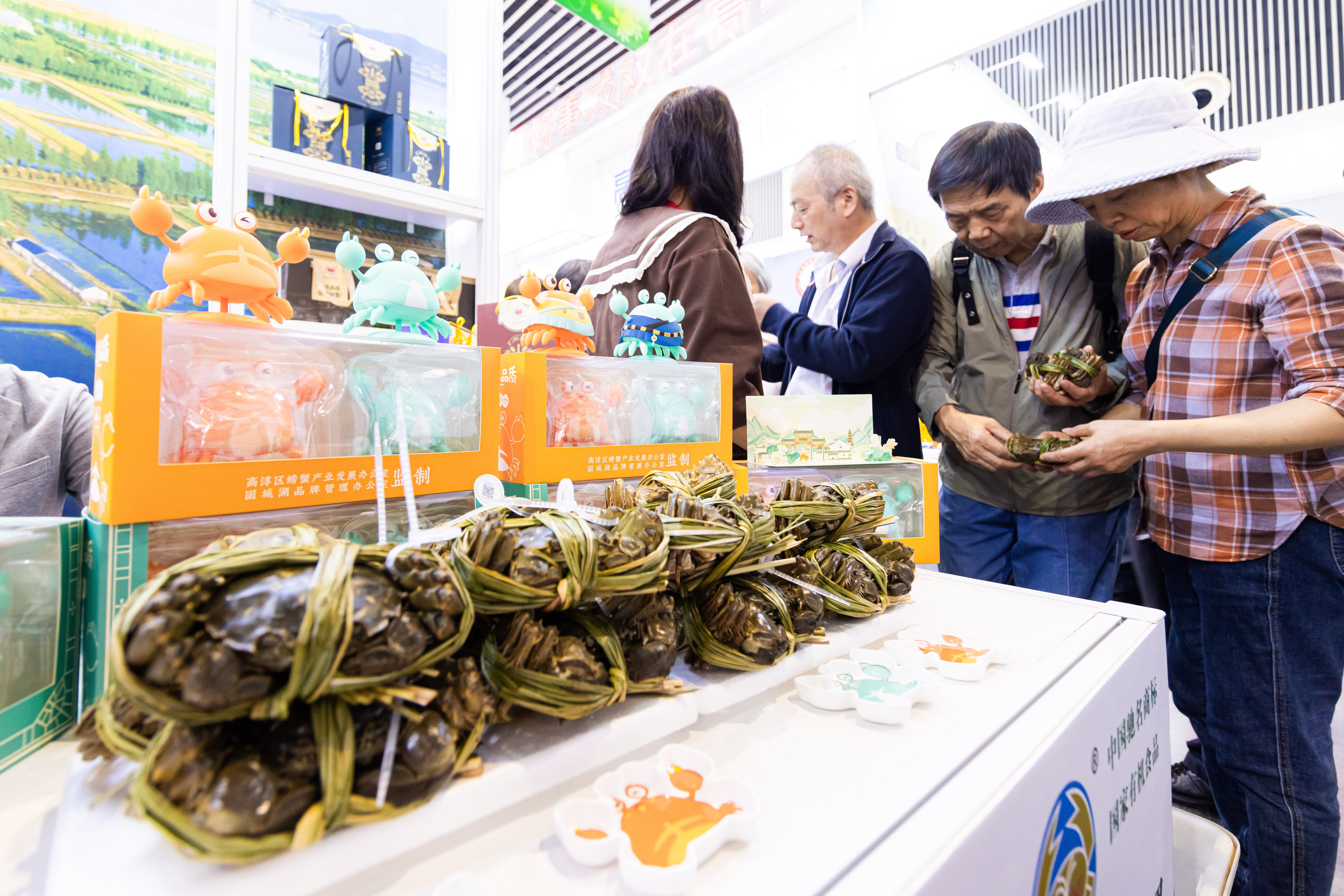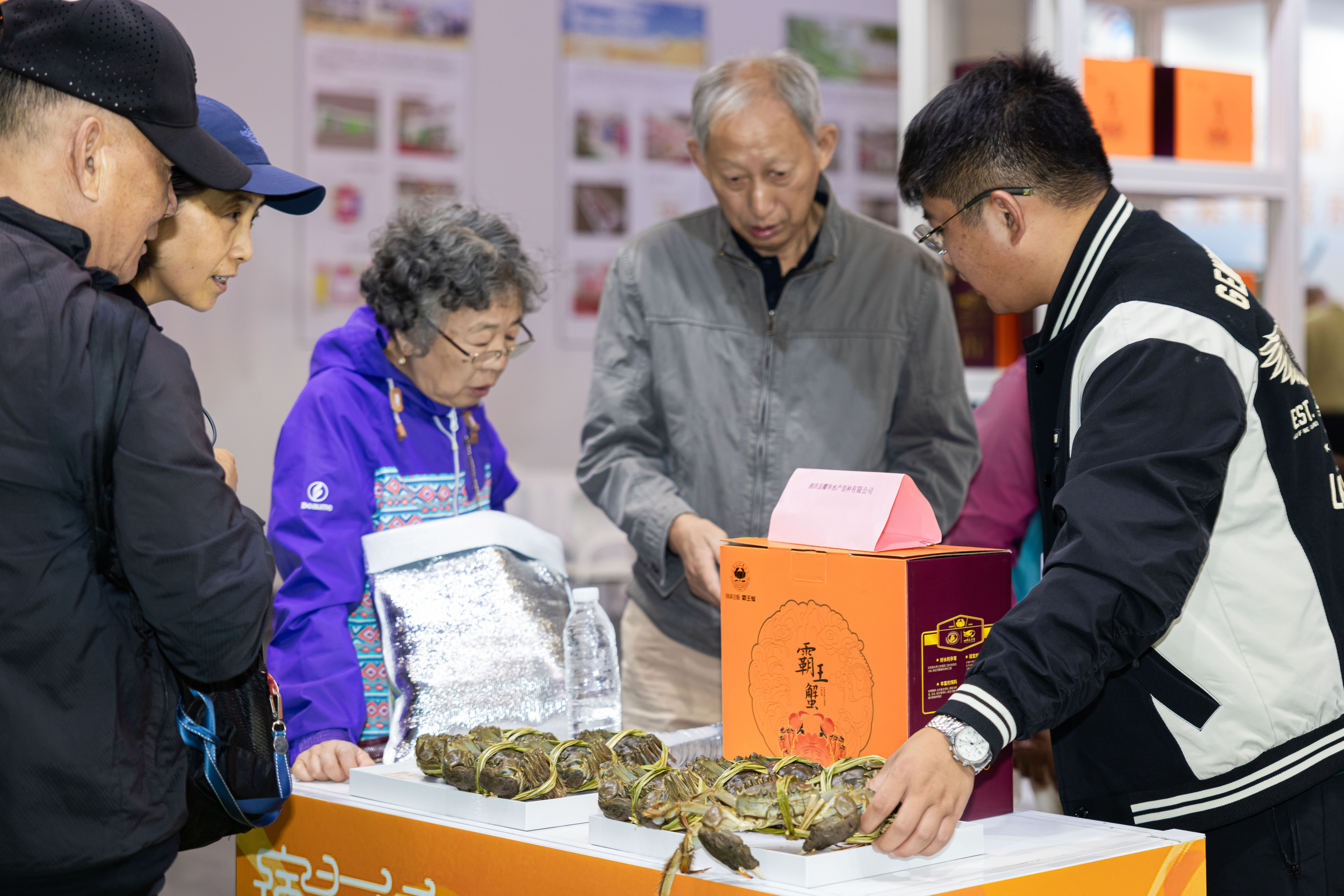 在开幕式现场,记者看到,阳澄湖大闸蟹、固城湖大闸蟹、洪泽湖大闸蟹、长荡湖大闸蟹、宿有千香霸王蟹、九龙口大闸蟹、高邮湖大闸蟹、镇江江蟹、大纵湖大闸蟹、溱湖簖蟹等一批河蟹区域公用品牌“百花齐放,春华满园”。