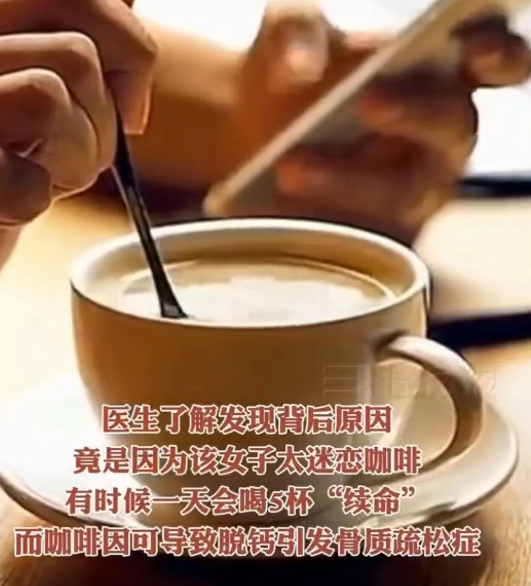 无独有偶,最近,浙江省人民医院接诊了一位女性患者,因为常年、过量喝咖啡,被确诊为骨质疏松症。