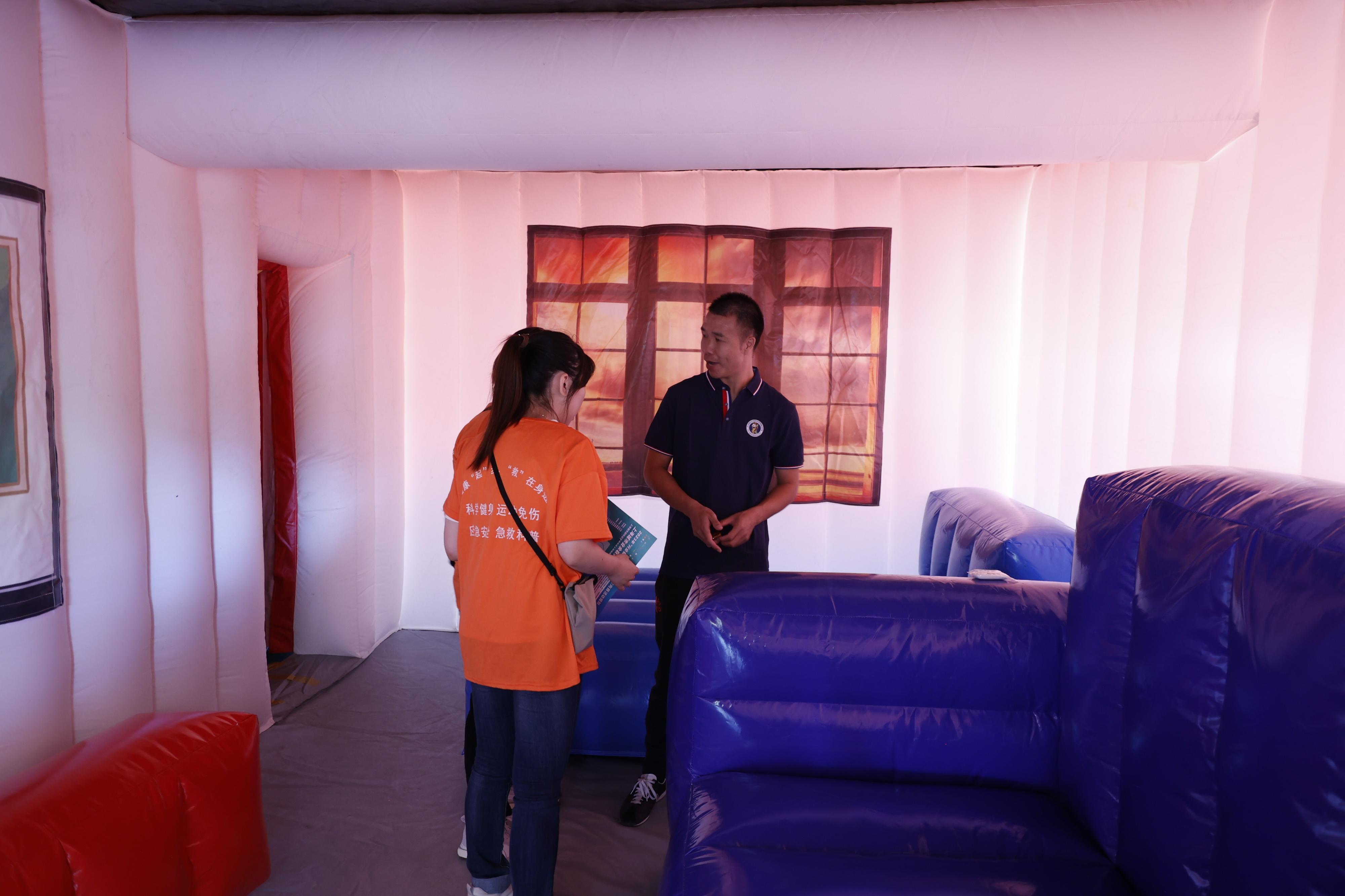 为了结合第32个全国消防日的主题“预防为主,生命至上”,在主会场的嘉年华区域还设有VR高楼救援体验、火灾烟道体验,CPR-AED应急安全科普培等供选手、居民体验的项目。