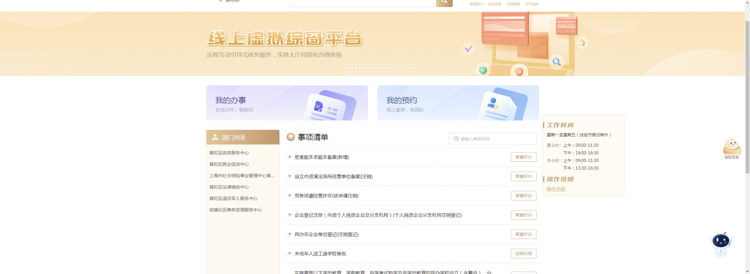 今年,普陀区努力构建智慧精准、公平可及的政务服务体系,突破时空限制,拓展服务能级,积极探索建设政务远程虚拟窗口,进一步为政务服务赋能,切实解决线上办事“难”、流程复杂“繁”、无人指导“慢”,让企业和群众足不出门就能体验到“身临其境”的高效便捷政务服务。