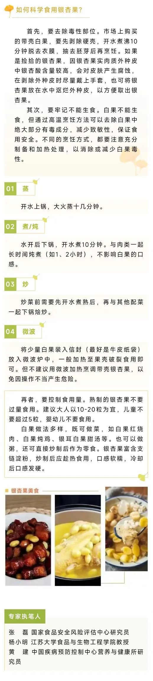 银杏树树形优美,叶色春夏季嫩绿、秋季金黄,作为庭园树及行道树种,被广泛种植。银杏果实成熟,一些消费者会购买,也有人捡拾脱落的果实食用。但食用不当容易产生风险,消费者应该如何安全食用呢?特作如下风险提示。