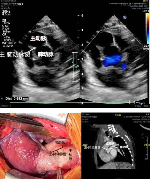 心外科叶明主任给出了答案:“因为他有一个很大的主-肺动脉窗,从心脏增强CT上来看,患儿的体循环和肺循环的血液通过主-肺动脉窗进行沟通混合,这是他能够存活下来并且症状不是非常严重的主要原因。”