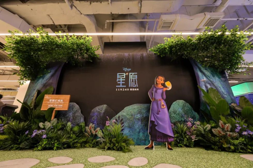 在POPARK区域,“星愿森林”还原了电影女主亚莎第一次遇见许愿星的场景,消费者可借助其间特别设置的“心愿成真”打印机,与亚莎一起许下自己的心愿,身临其境感受影片的魅力。
