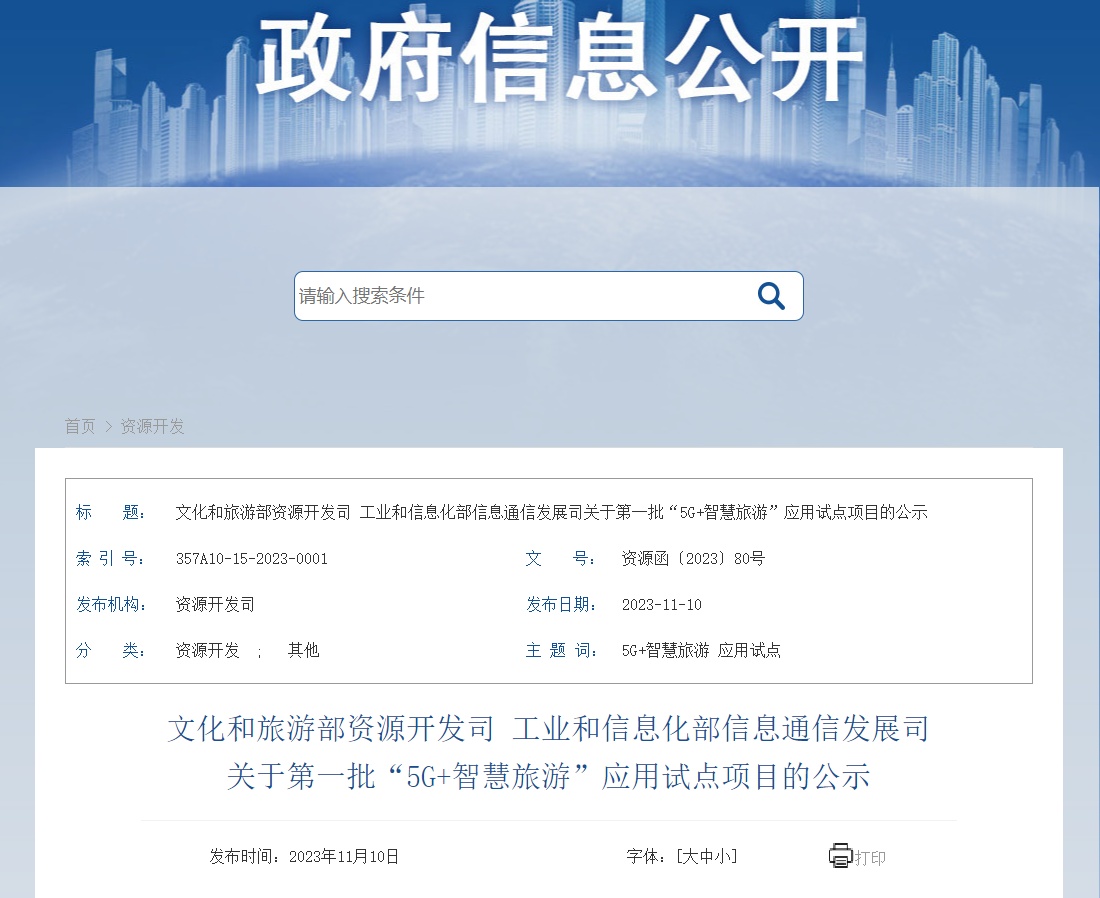 近日,文化和旅游部、工业和信息化部拟确定第一批“5G+智慧旅游”应用试点项目。