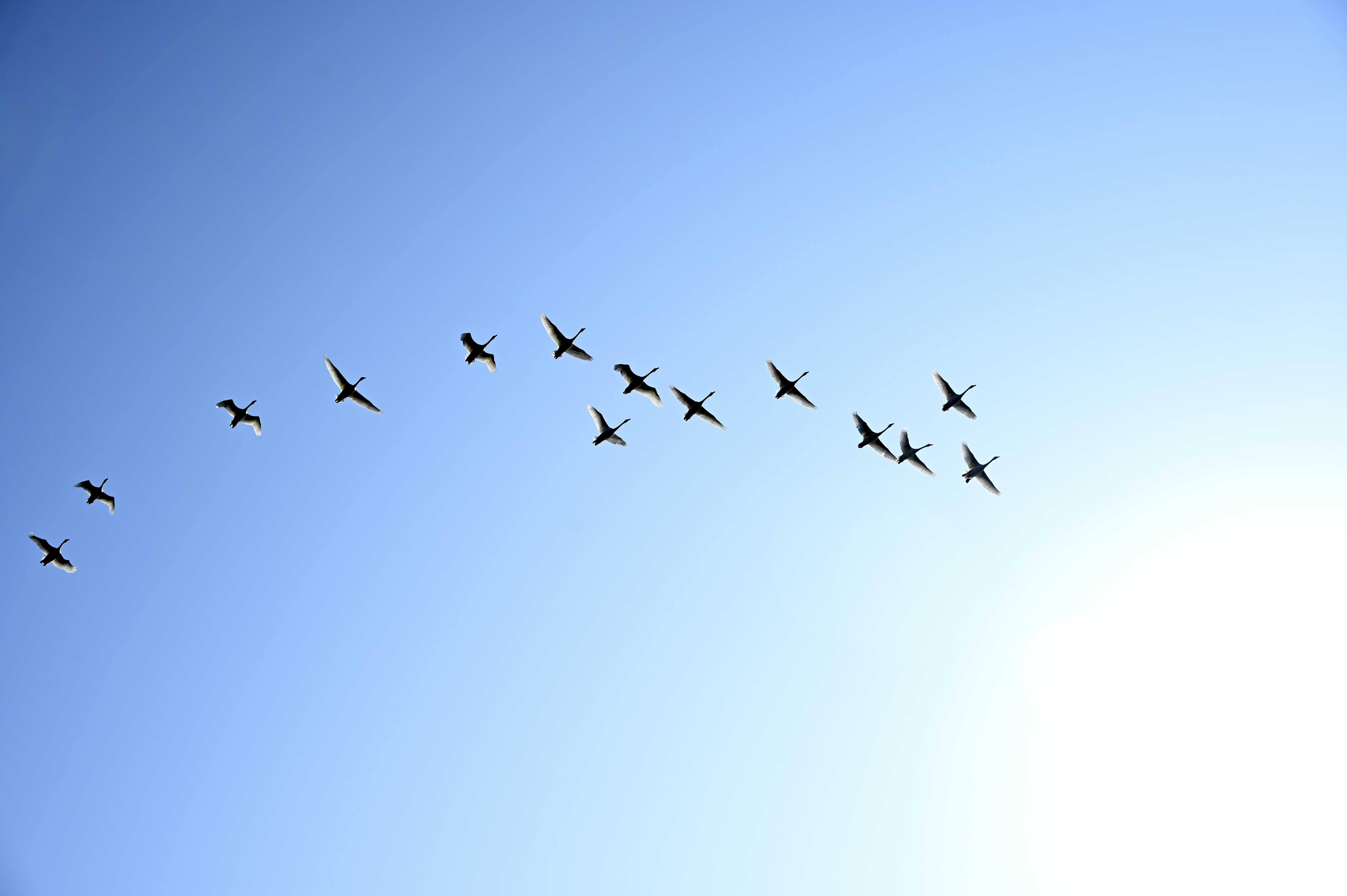天气转寒,数百只大雁与数十只天鹅飞抵邹城市看庄镇尚庄水库。它们挥动翅膀,有序划过天幕,时而“人”字形,时而“一”字形,为初冬的乡野增添了活力。近年来,邹城市看庄镇持续推进人居环境整治工作,从改善和提升群众生活品质入手,抓好宜居宜业和美乡村建设。当地生物多样性更加丰富,人与自然和谐相处。