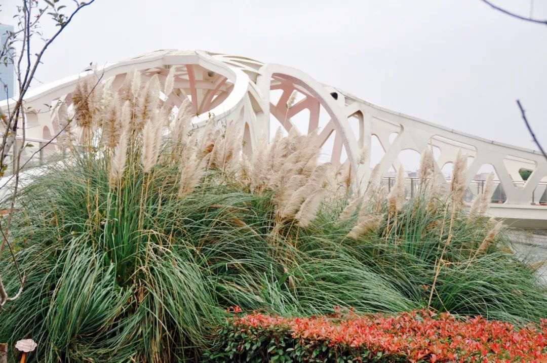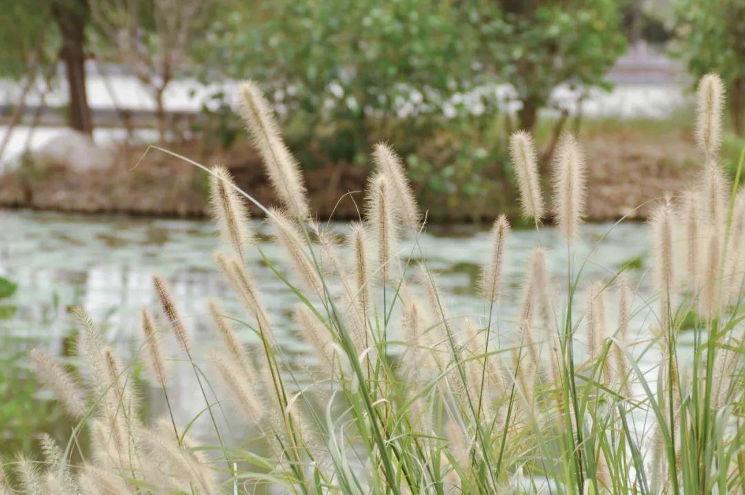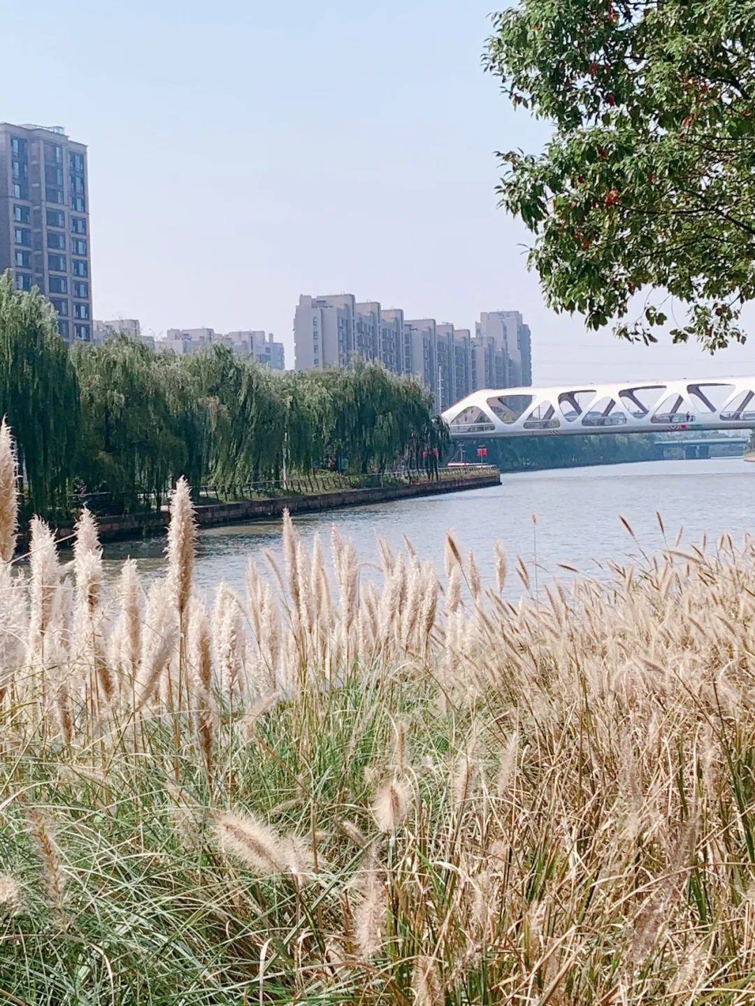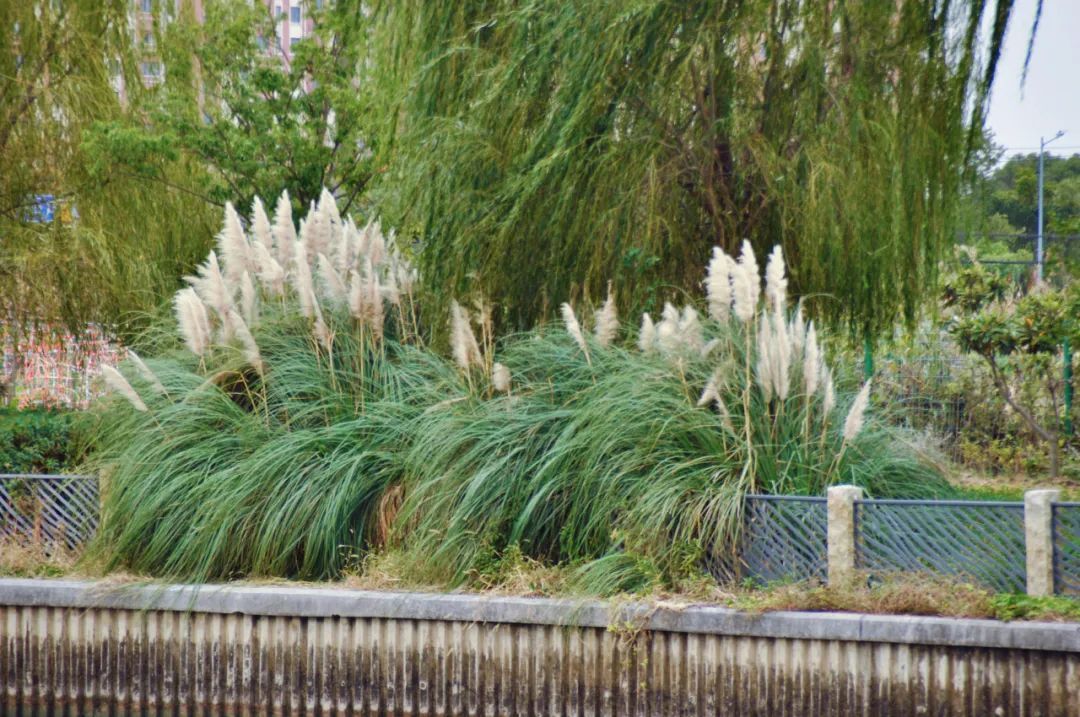 秋冬季节交替之际,青浦环城水系各公园、各骨干河道滨江绿道,种植了芒草、蒲苇、狼尾草等多种观赏草,搭配绿树、碧水,构成一幅幅清新而绚烂的植物油画……